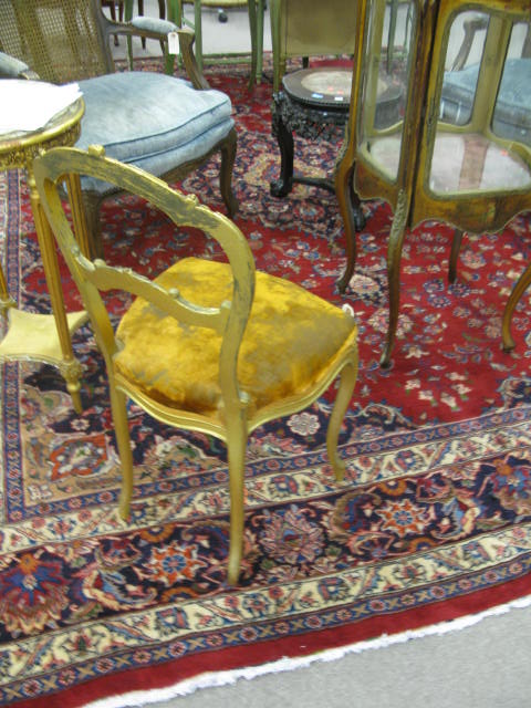 Set of four tufted kitchen chairs, caned back chair and dropwell dresser