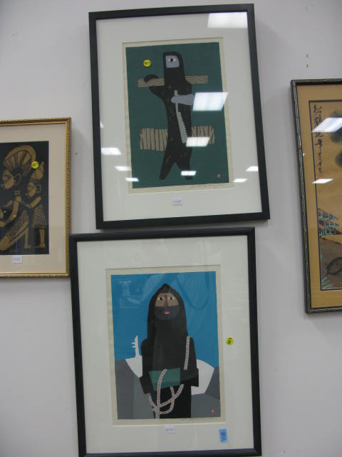 Pair of pencil signed Japanese prints Umetaro Azechi