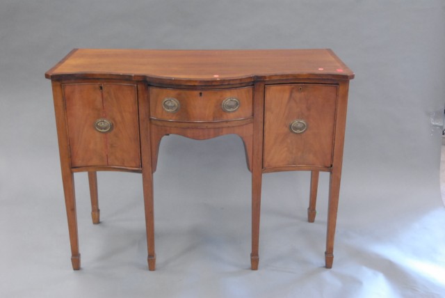 Diminutive Federal style mahogany sideboard with 3 drawers, and banded inlaid top.
