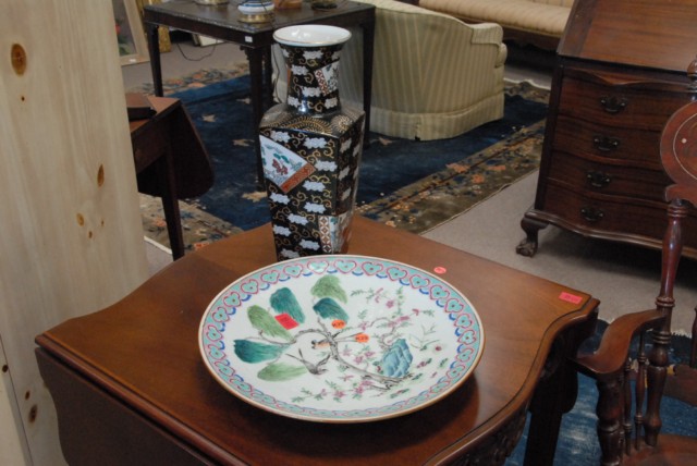 Two piece Oriental porcelain charger and Oriental porcelain vase.