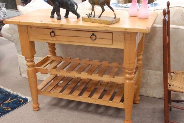 Pine server with built in wine rack.