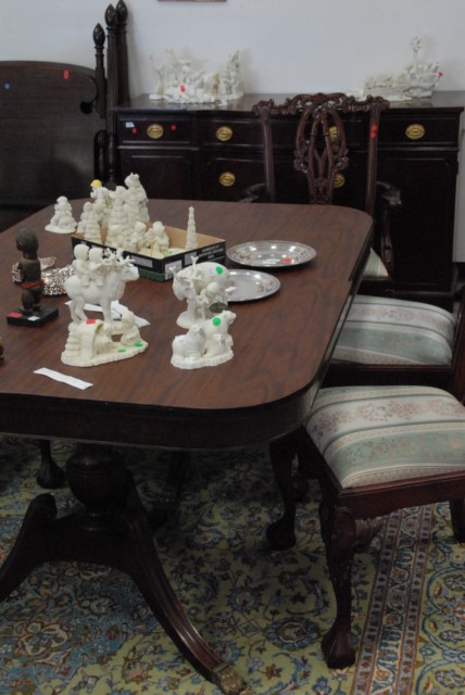 Mahogany dining table and sideboard, has two leaves and pads.