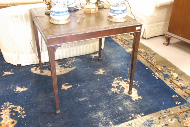 Custom mahogany leather top card table.