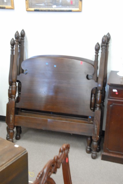 Pair of mahogany twin beds with pineapple tops.