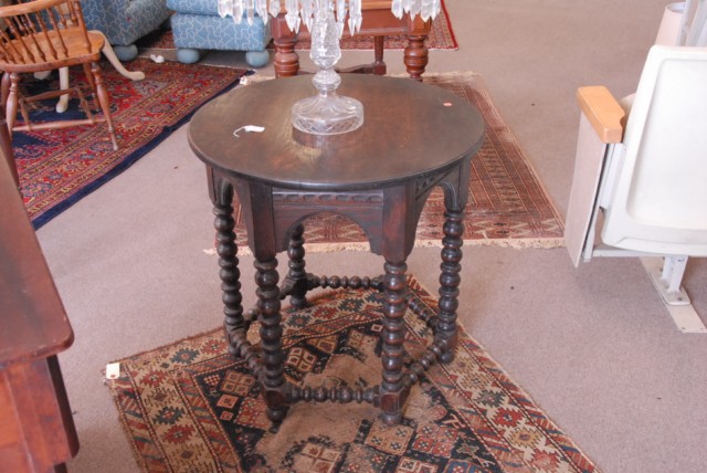 Oak occasional round table on turned legs.
