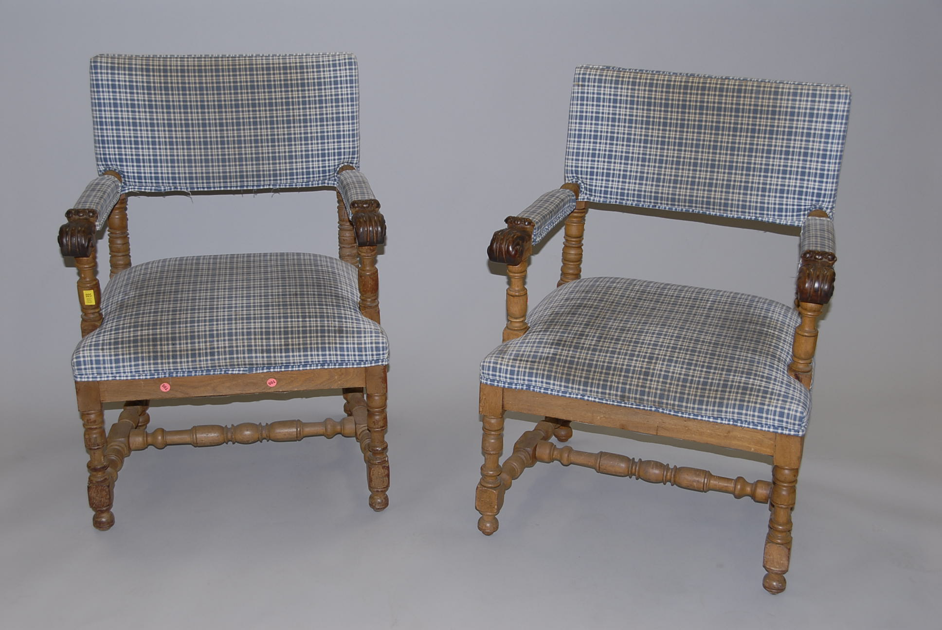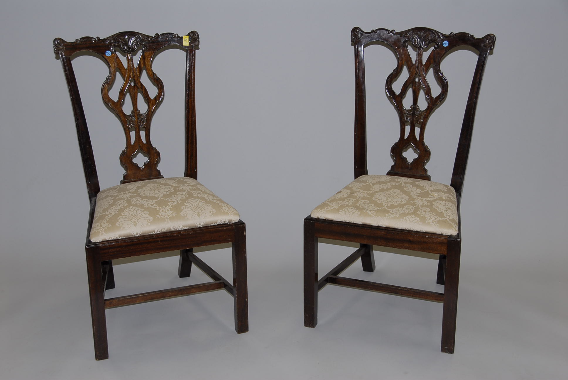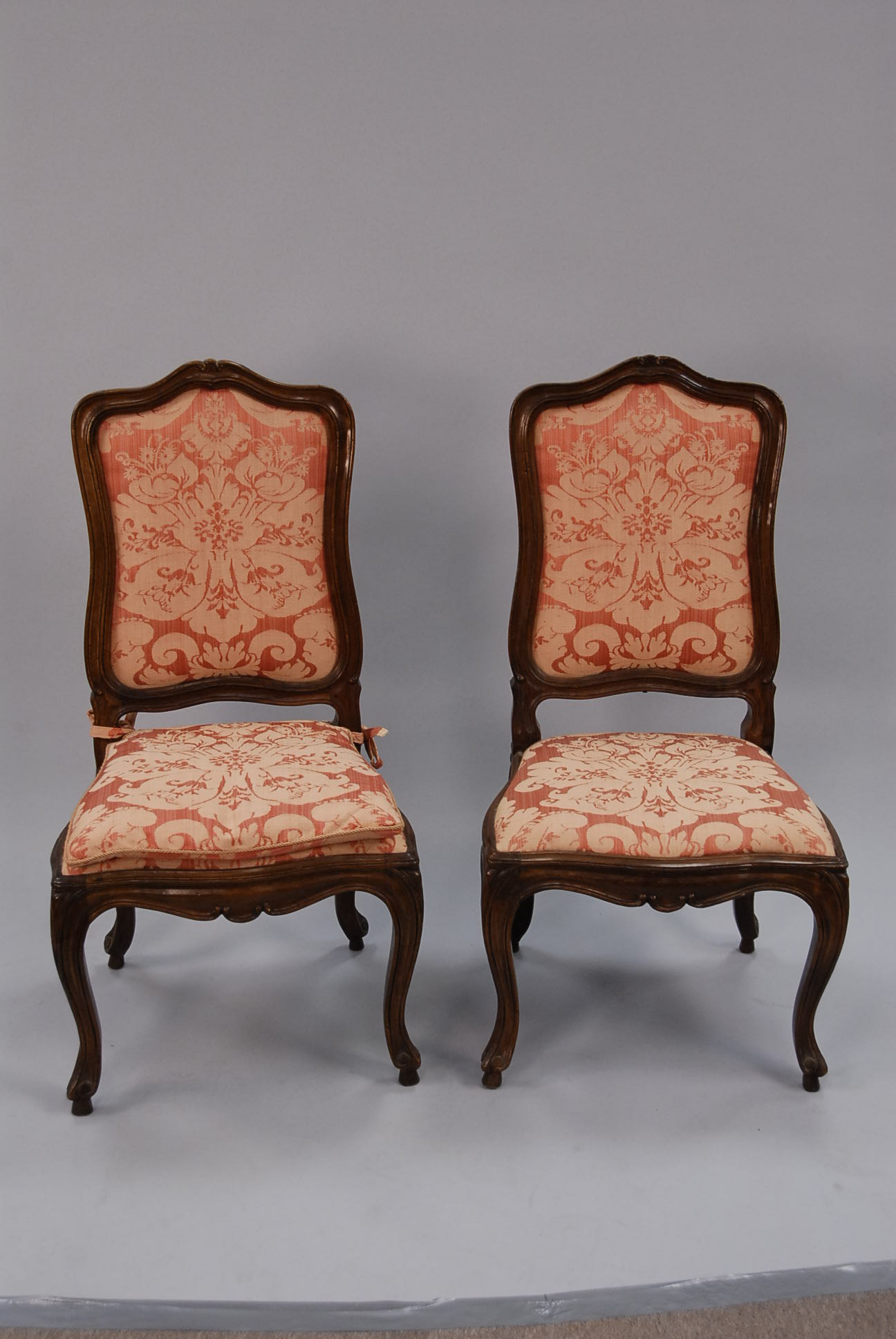 Group lot to include: pair of carved-back Victorian side chairs, one as is pair of rosewood Victorian chairs, as-is rush seat chair and one-drawer stand.