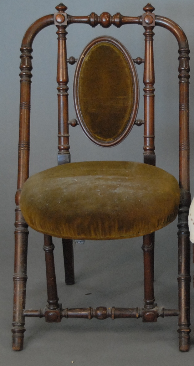 Three piece set to include mahogany settee, armchair, and side chair, all with upholstered seats, settee: lg. 53in.