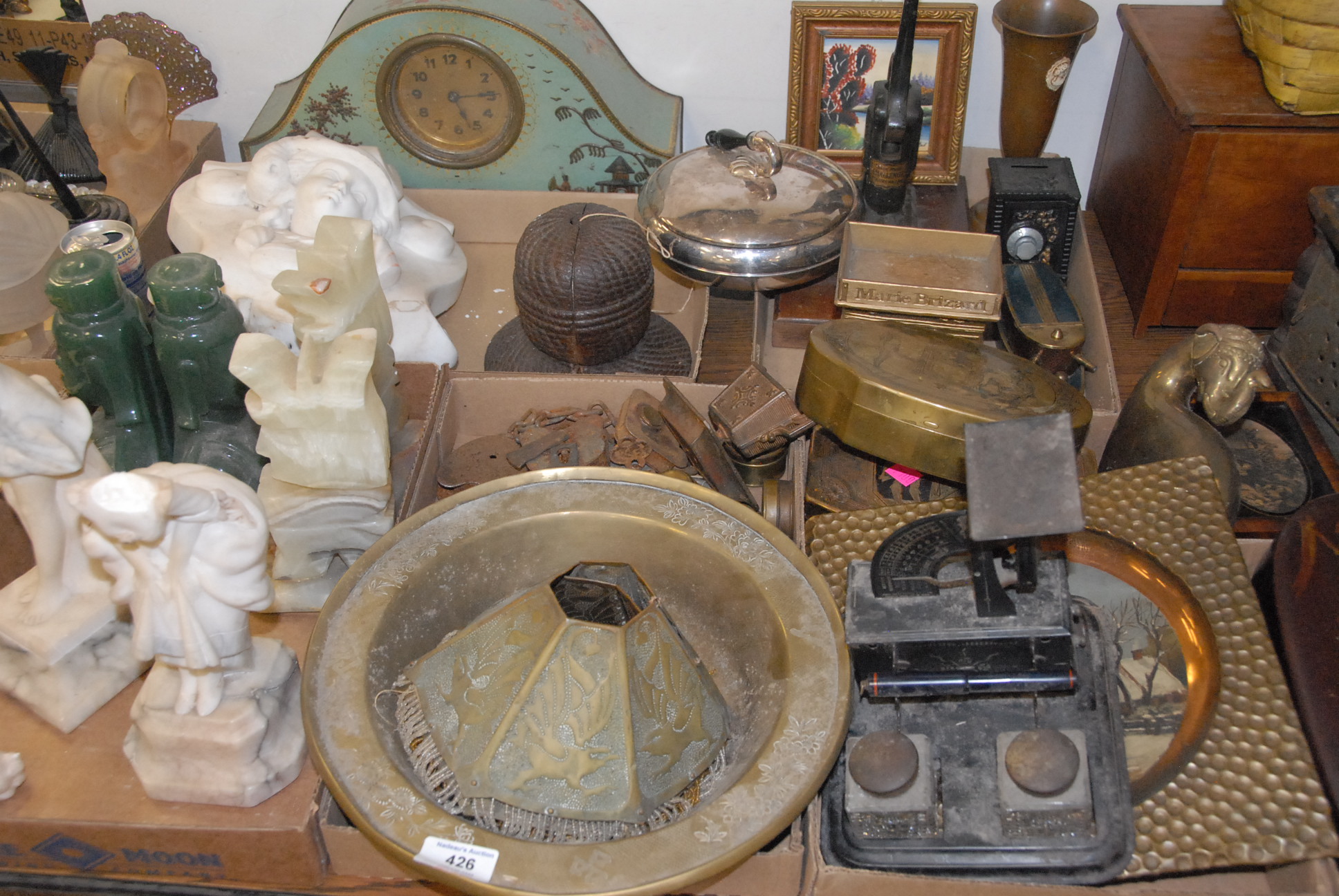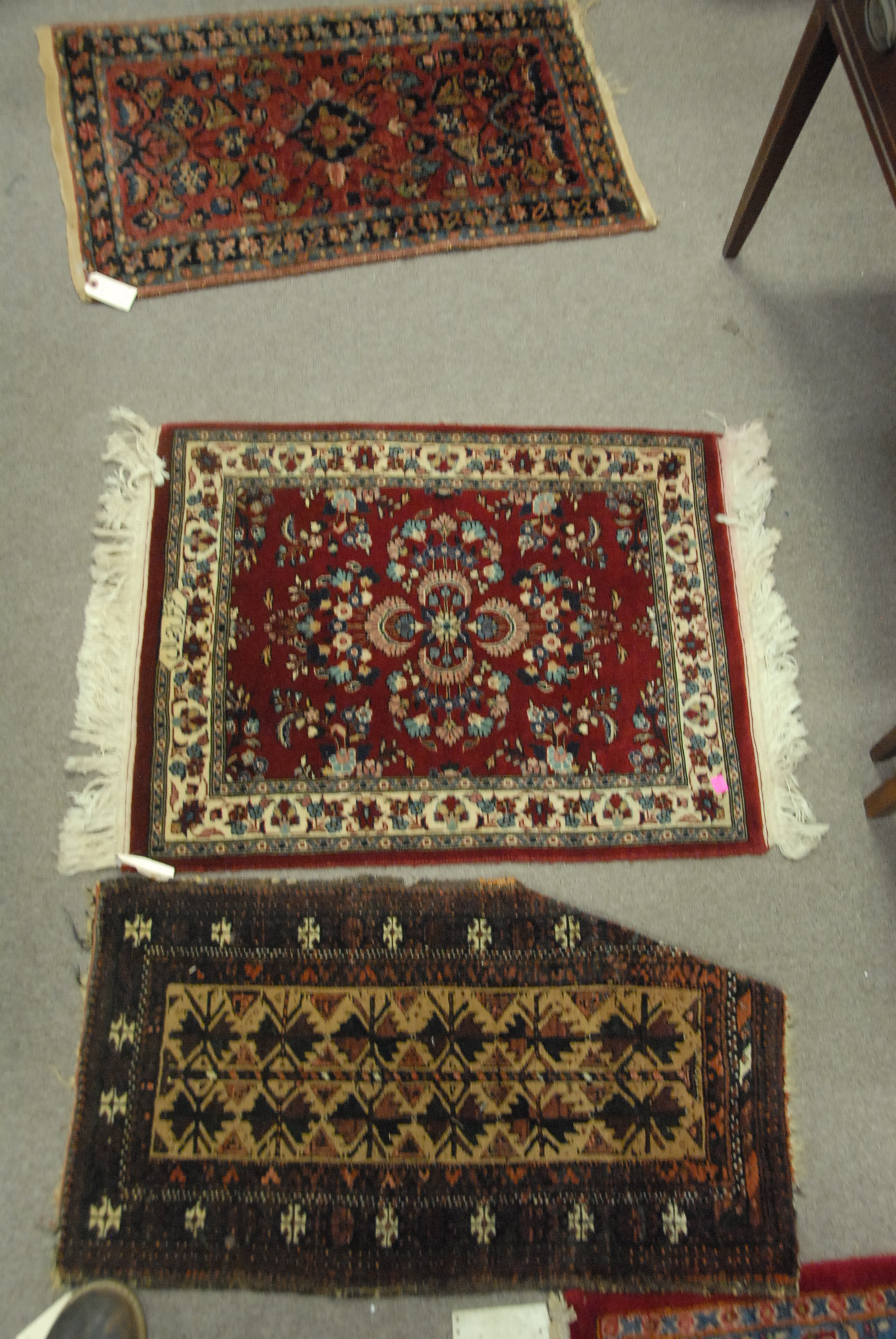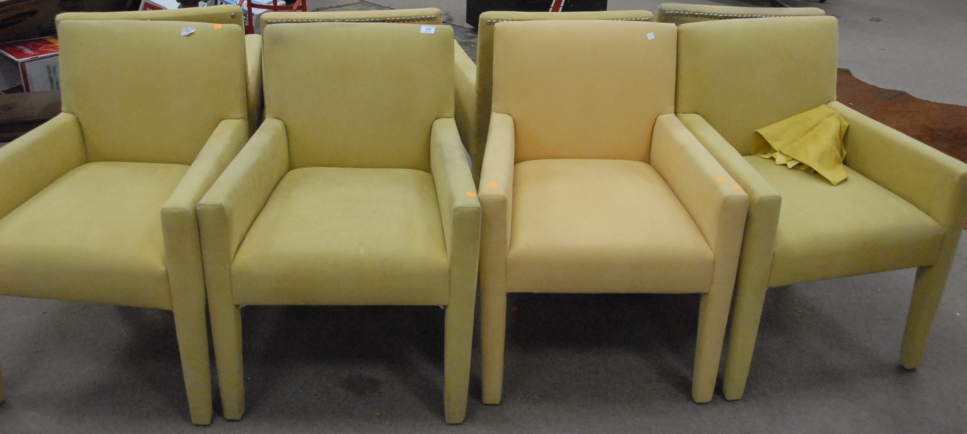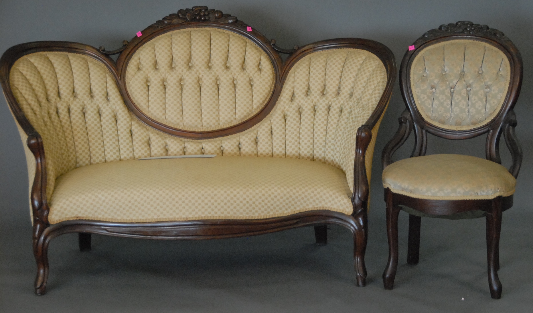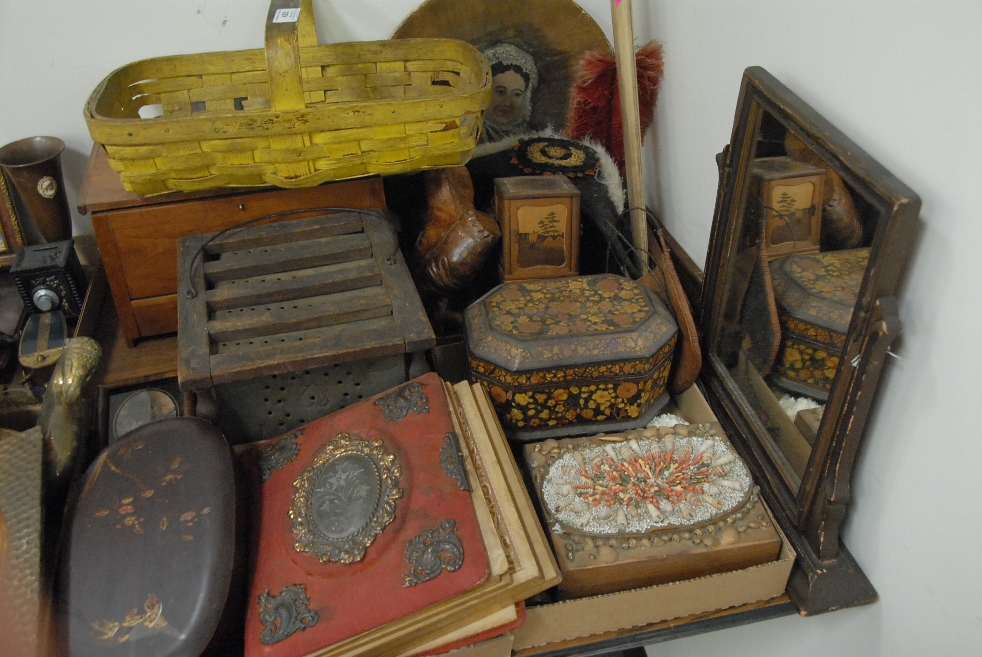 Group lot to include Famille Jaune baluster vase with pink peony and bird ht 15in. and Chinese mille fleur tea/dessert service on black ground, 34 total pieces, including: teapot, creamer, sucrier, 6 cups, 7 saucers, 8 tea plates, 7 bowls, 2 covered rice or condiment bowls with saucers, and small teapot spurious Guangxu and Qianlong marks, China 19th/20th century minor fritting to a few plates and cover missing to smallest teapot.