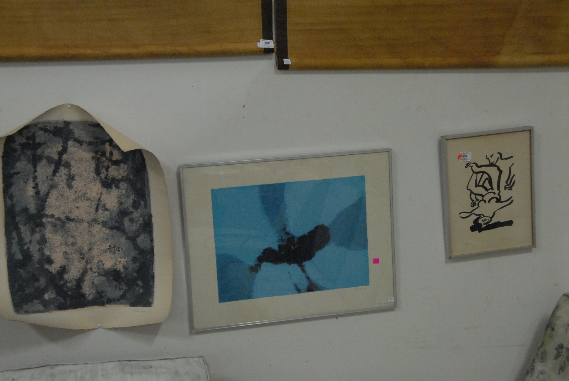 Three piece lot to include two Leon Zack 1892-1980 composition lithographs, one framed, one signed lower right Leon Zack 58 21 3/4 x 16 3/4, other signed lower right Leon Zack 76 13 3/4 x 18 3/4 Charles Lapicque 1898-1988 lithograph of nudes signed lower right Lapicque and marked lower left E. A. XVI/XXX 14 3/4 x 11.