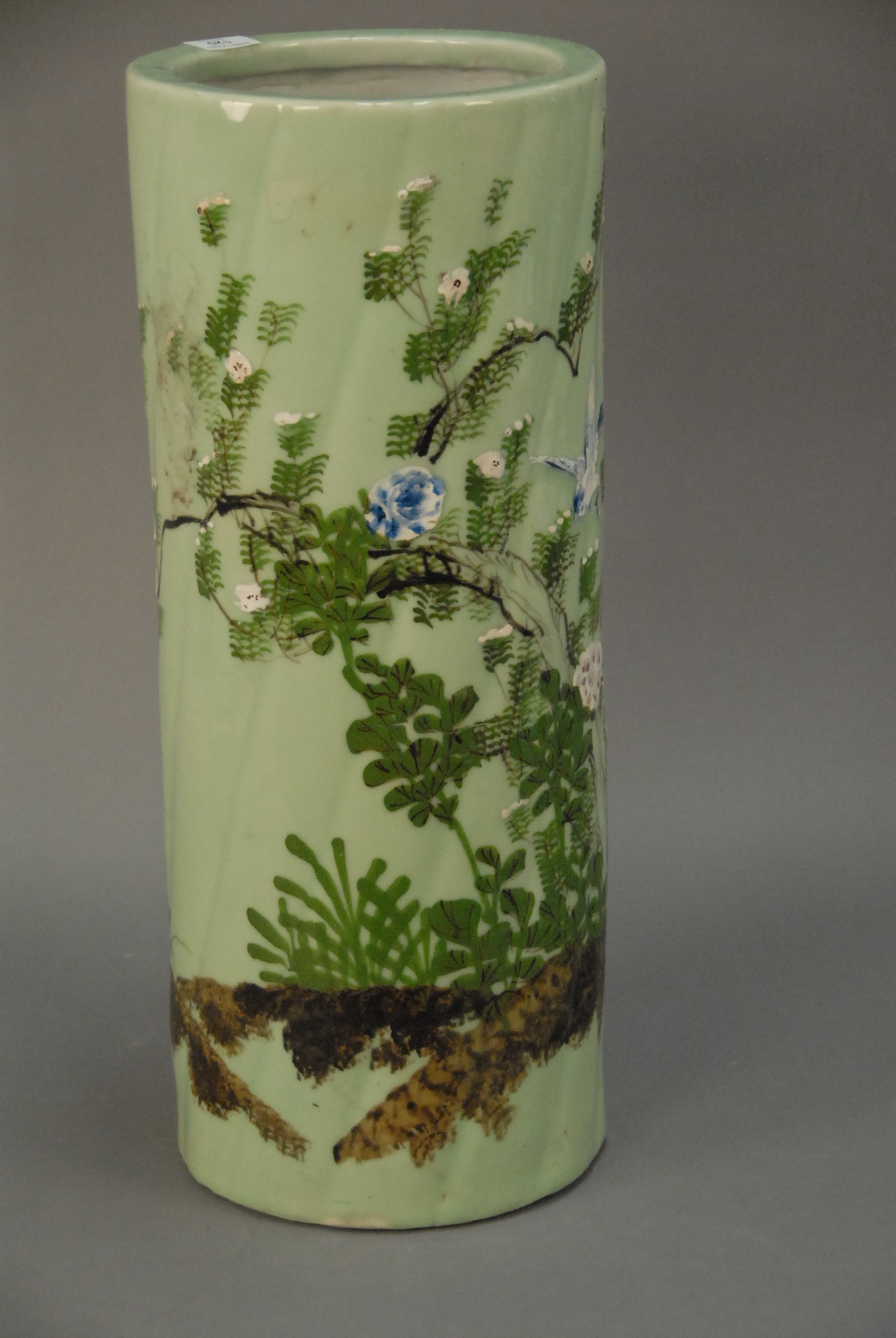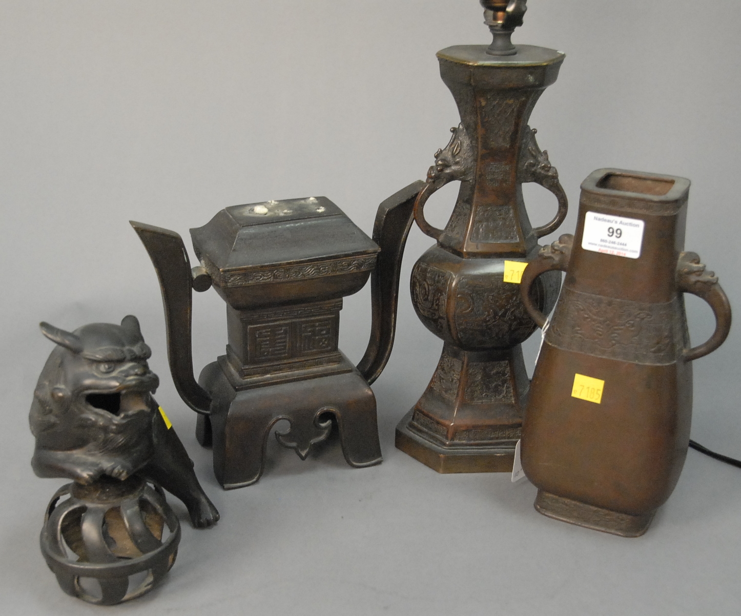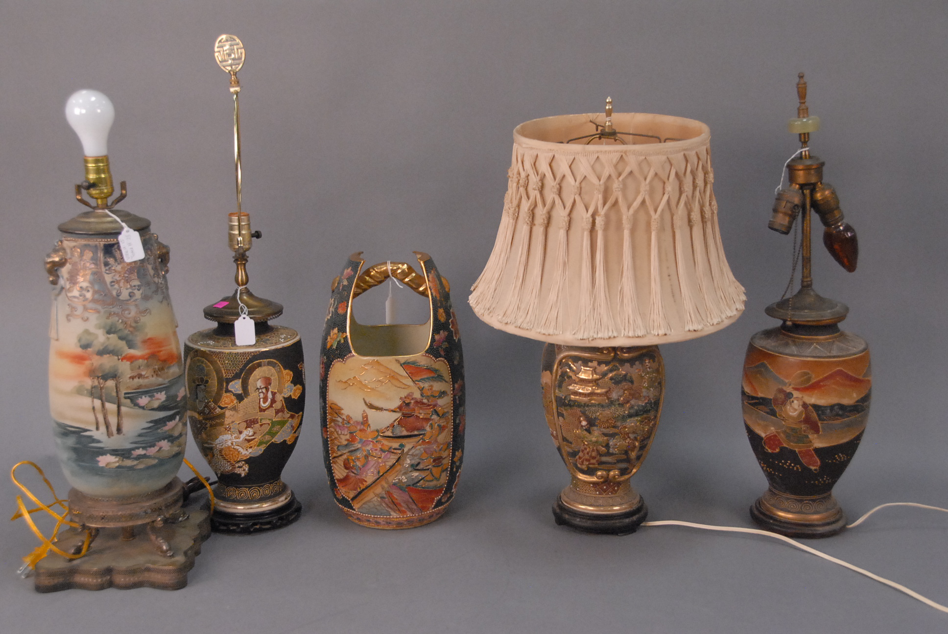 Four piece lot to include a pair of Japanese framed woodblock prints sight size: 10 x 15, Oriental watercolor on silk black and white landscape, and Oriental watercolor on silk of two bats at sunrise 18 x 20.