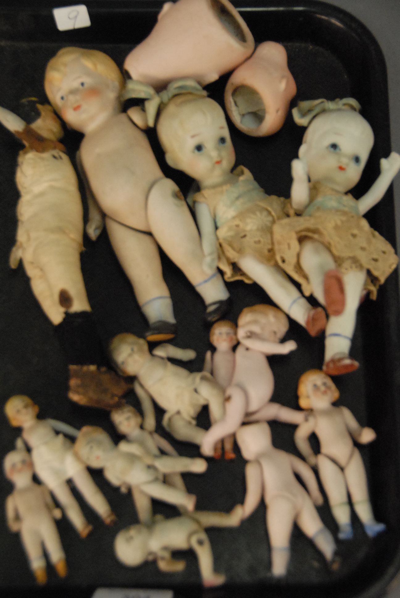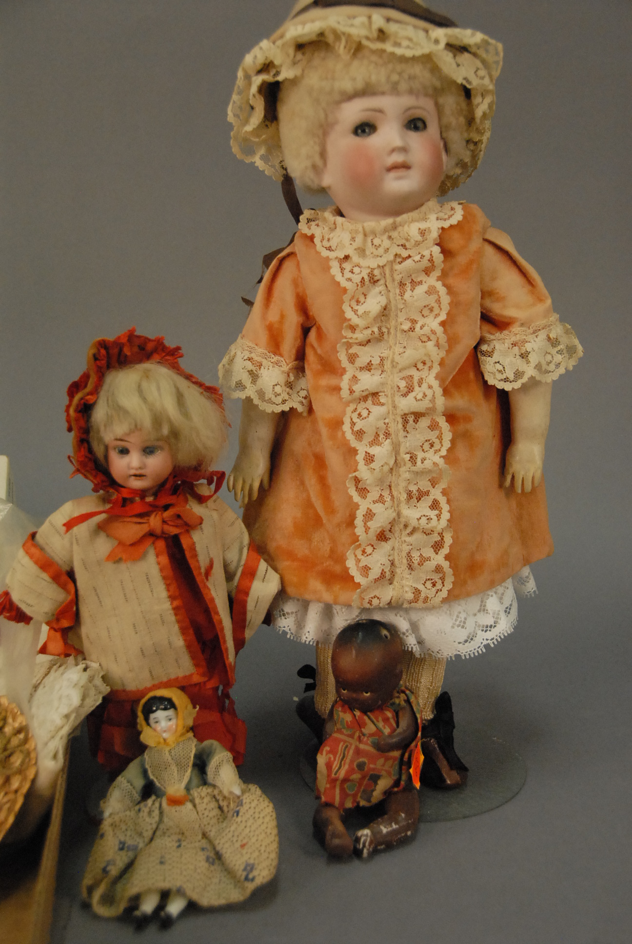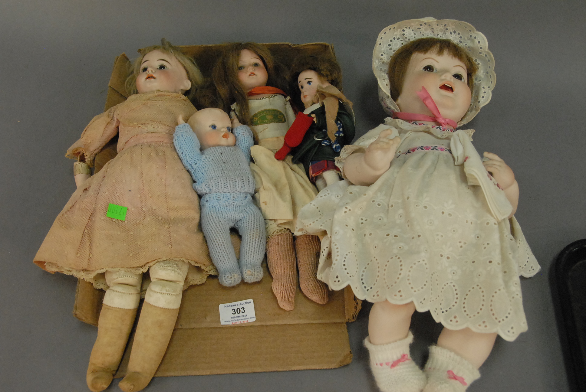 Group of five dolls to include Armand Marseille bisque head doll 1894 AMI-Dep 17in., Armand Marseille Floradora 14in., Western Germany doll, Muller baby doll, and porcelain Marilyn Ainsworth doll.