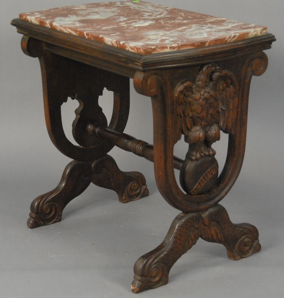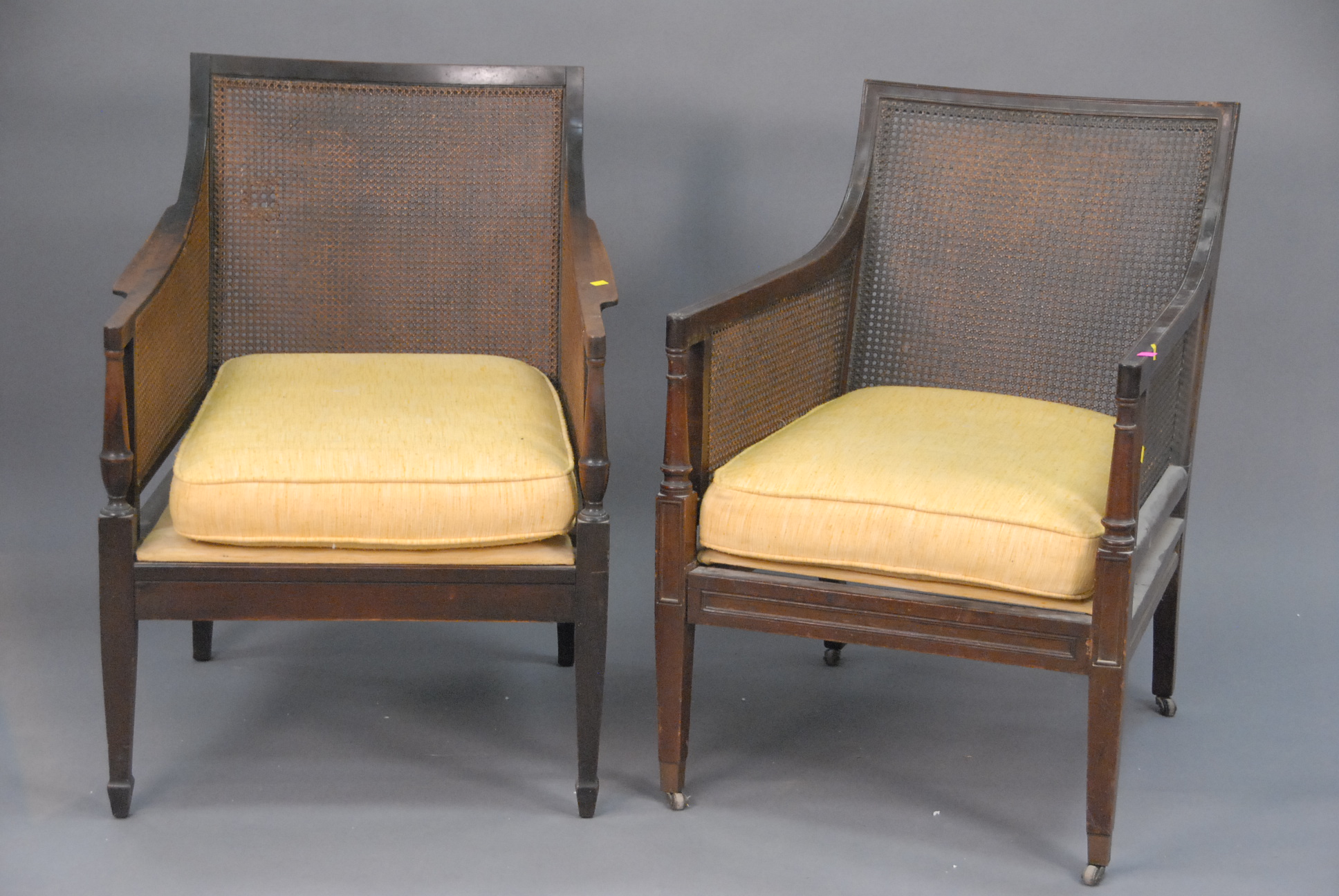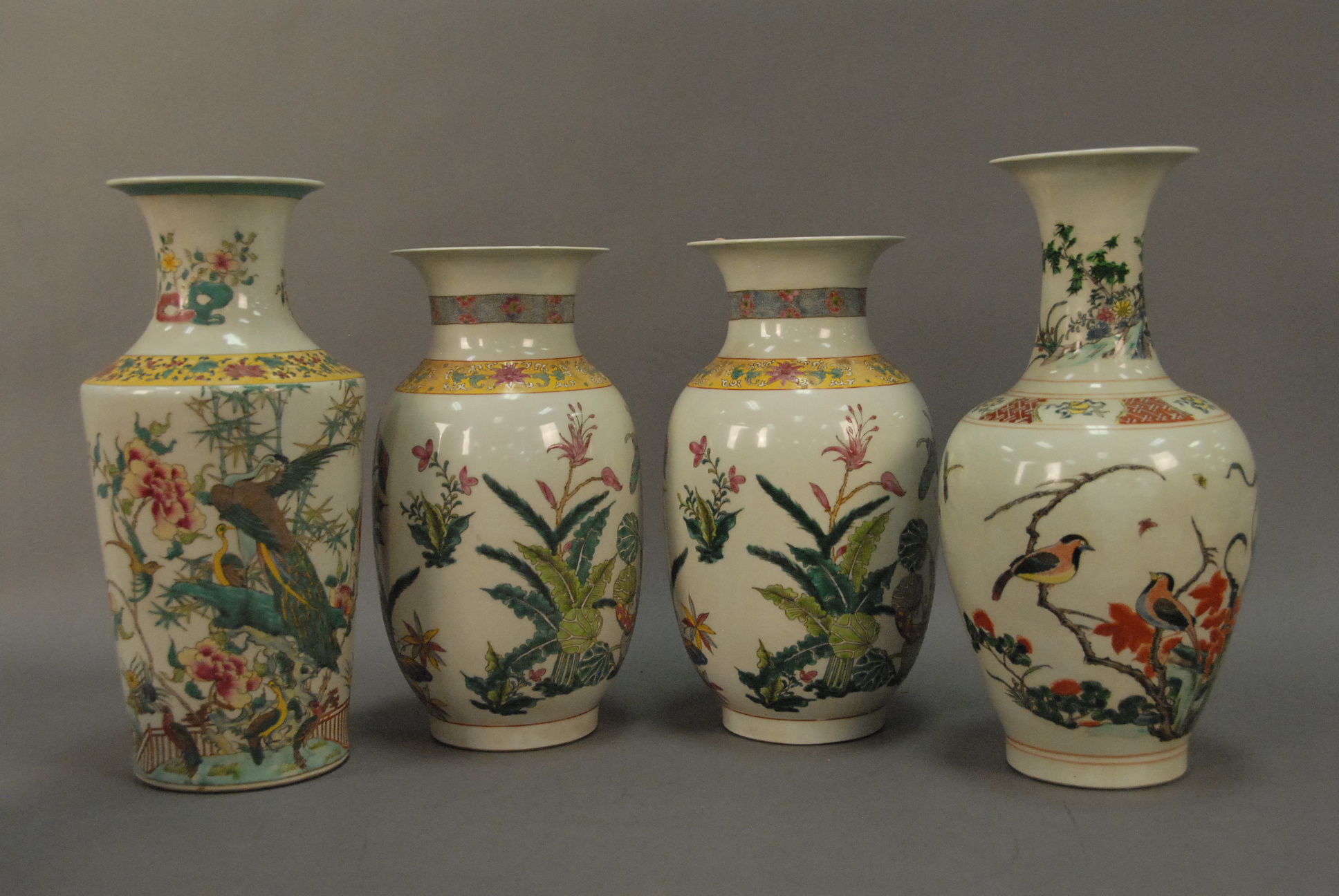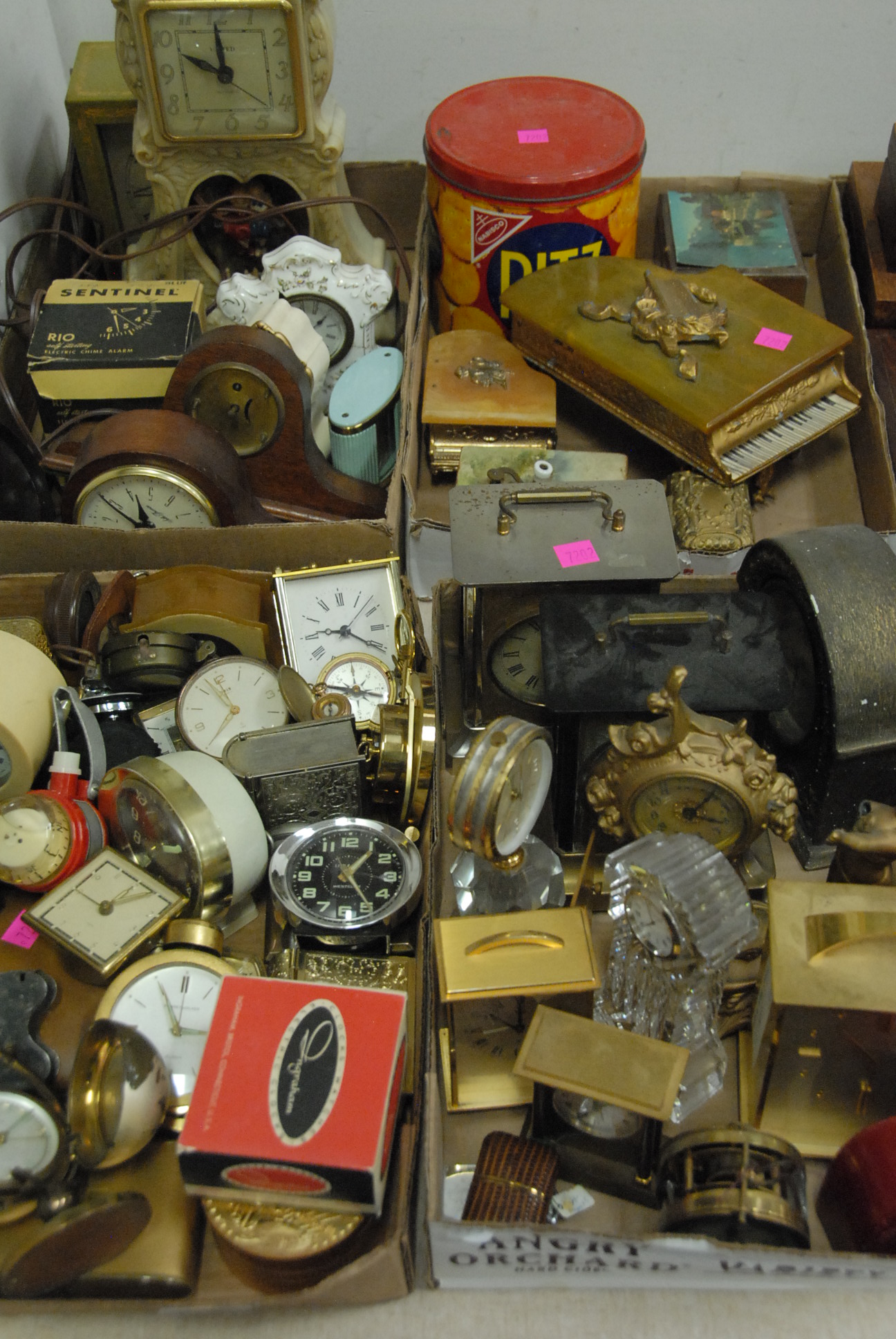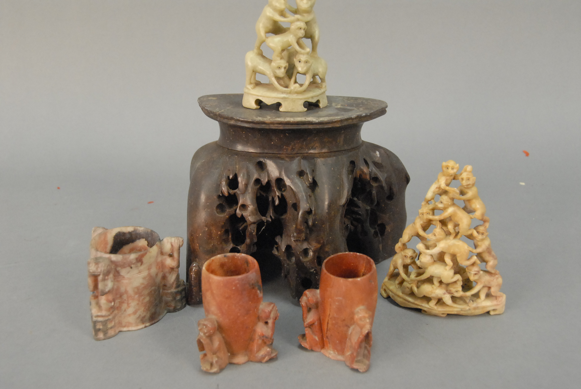 Group of four cast iron still banks to include ornate still bank building, school house with copula, miniature house with chimney, and capitol dome bank. hts. 3in. – 5in.