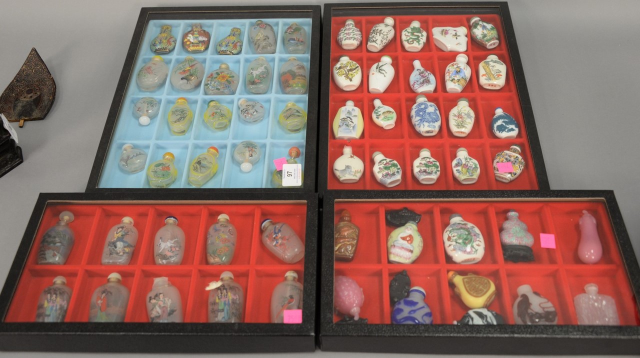 Large lot of Oriental jewelry, jade pendants and stones, four pins, pair of earrings, four jadeite bracelets, three small carved jade gourds, two discs, etc. bracelets: 3 1/4 in.