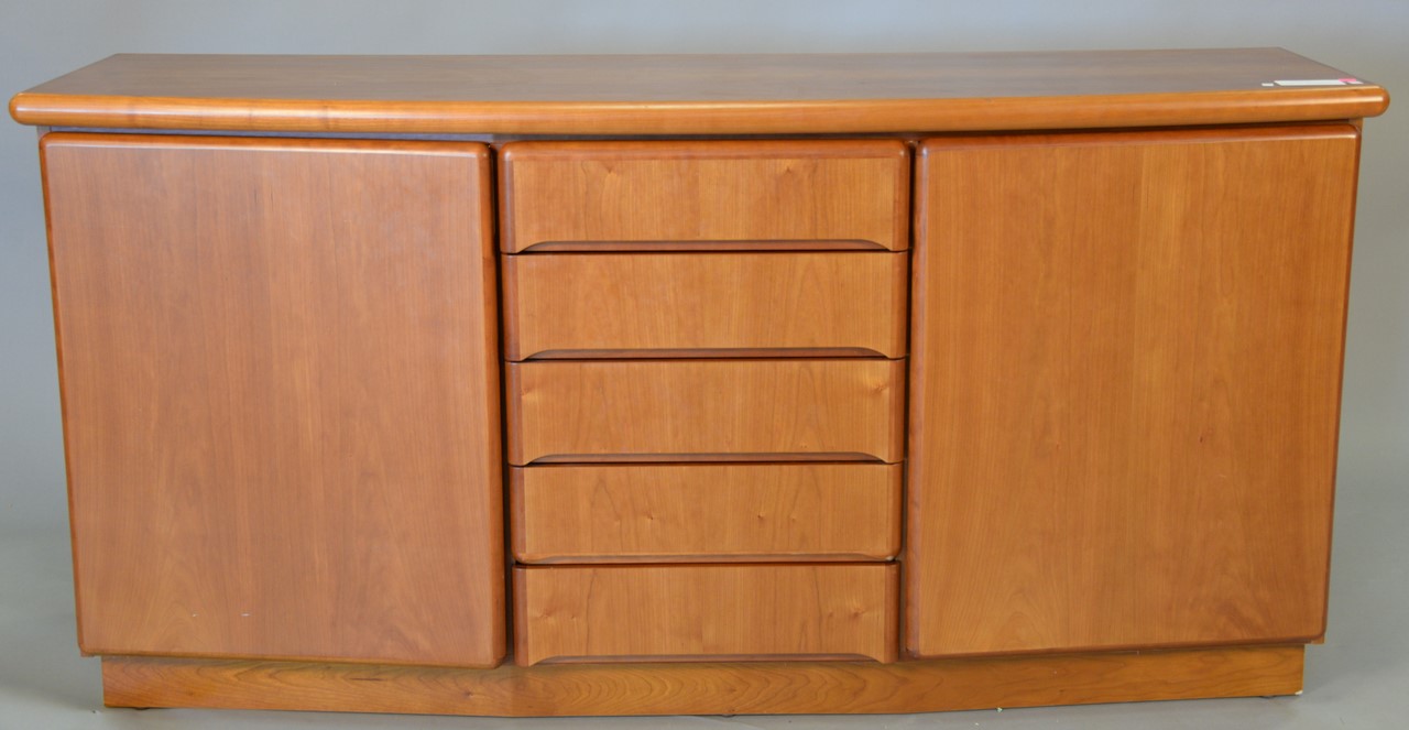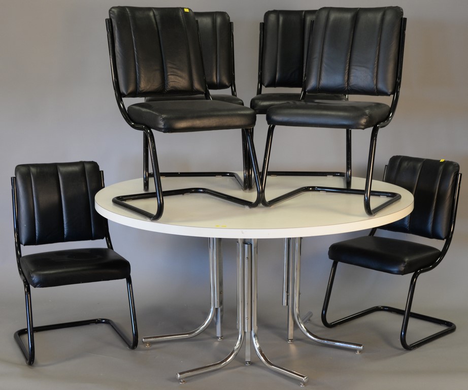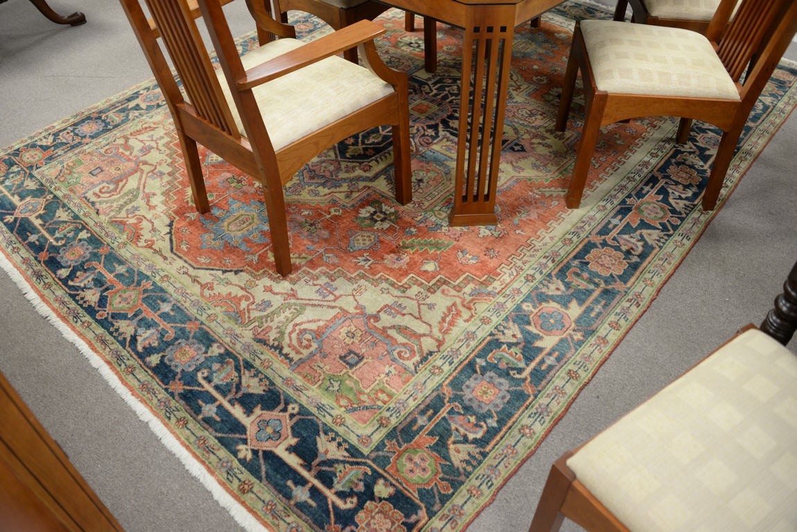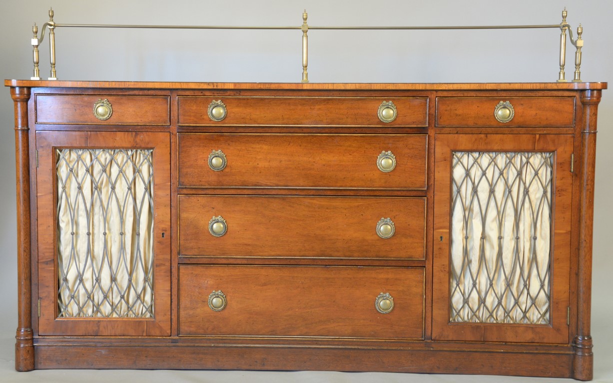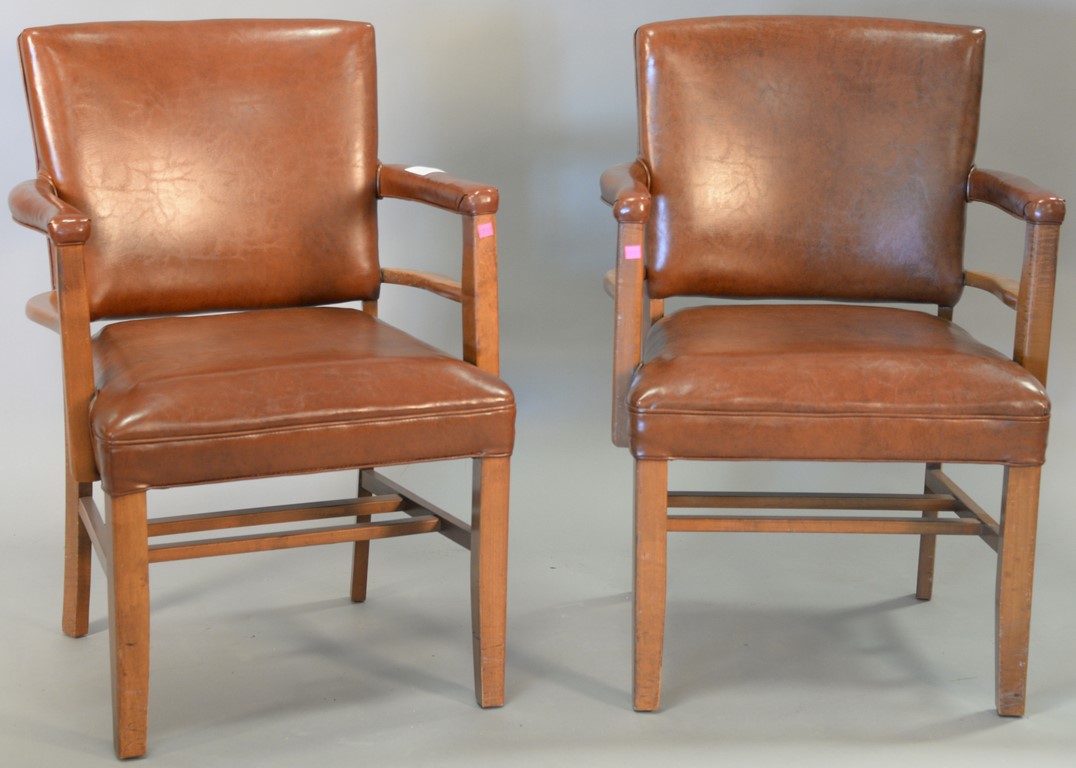 Stickley 21st Century cherry set of eight highback chairs with square spindles and matching inlaid table having two 15 leaves and custom pads, like new condition New Price 17,500. ht. 30 in. top: 44 x 68 opens to 98