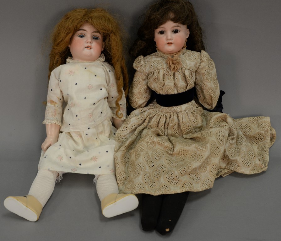 Two piece lot to include EAS German bisque head doll on new body, lg. 21 in. and an A. M. bisque head doll, shoulder head 370 on kid body/china hand, lg. 24 in.
