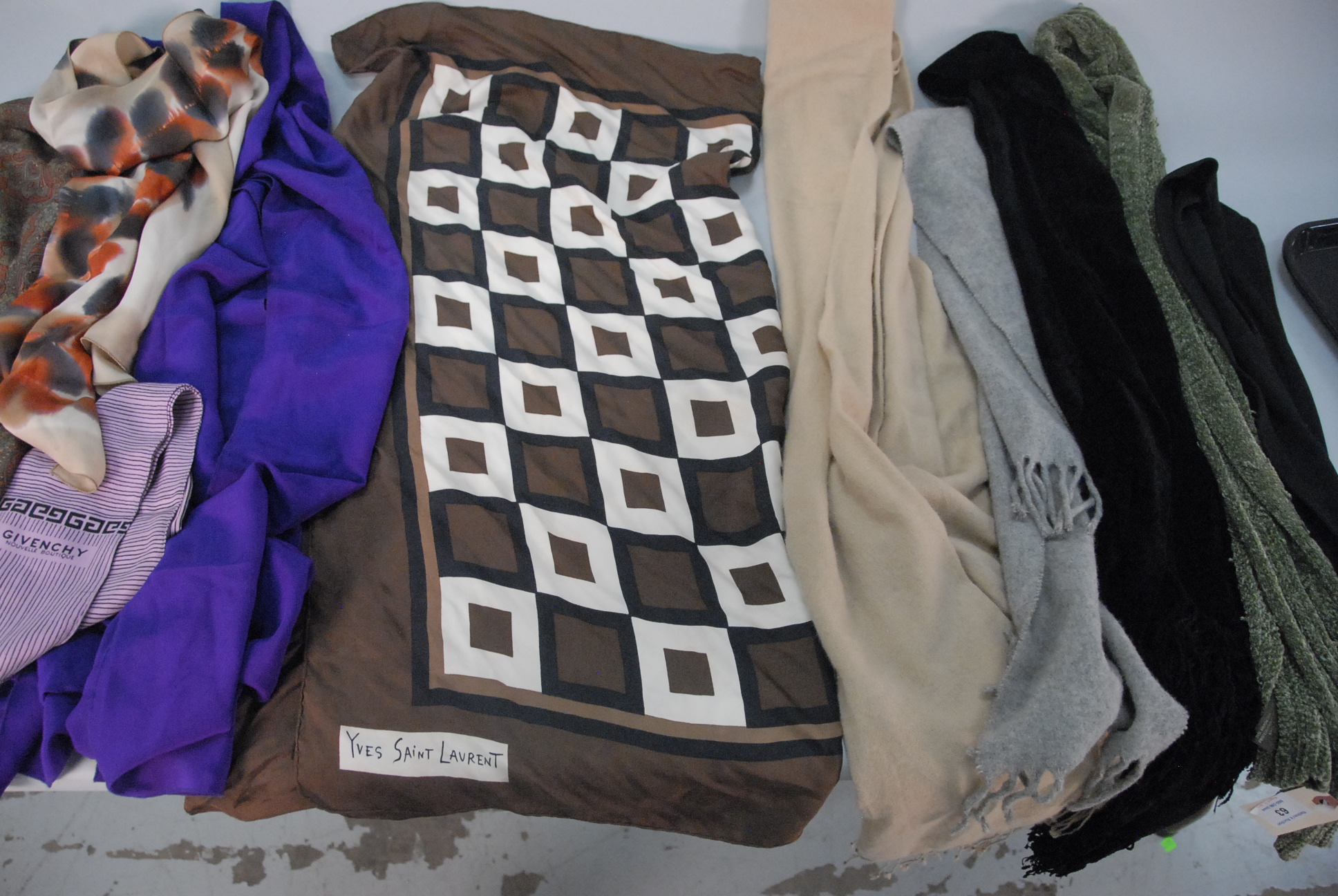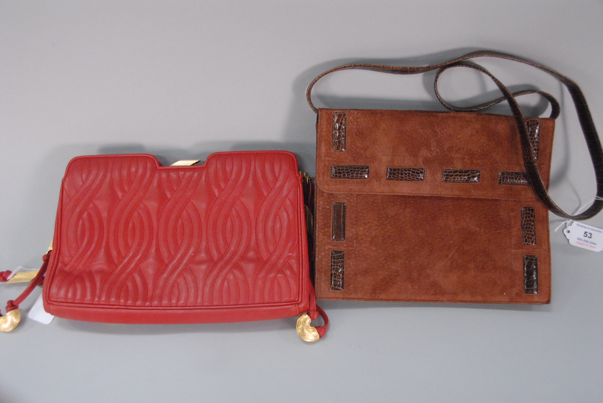 Fendi and Yves Saint Laurent two piece lot to include Yves Saint Laurent purse in brown suede and lizard skin ht. 8in. lg. 10in. and Fendi bag in red leather ht. 7in. lg. 10 1/2in.