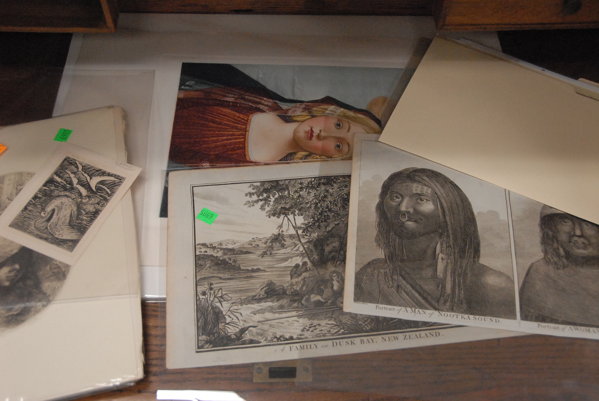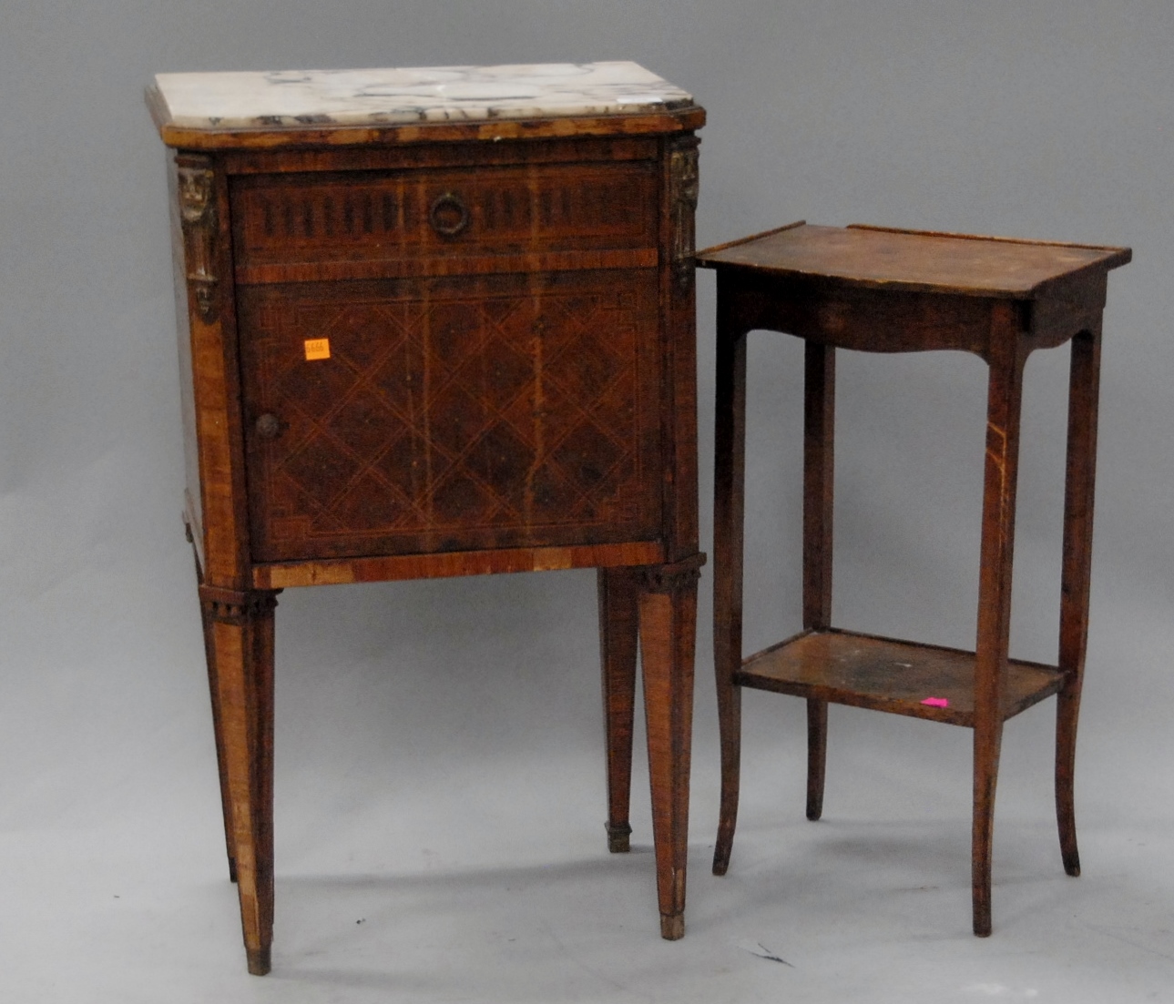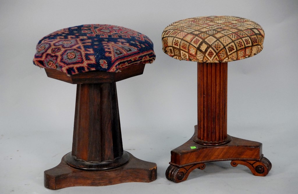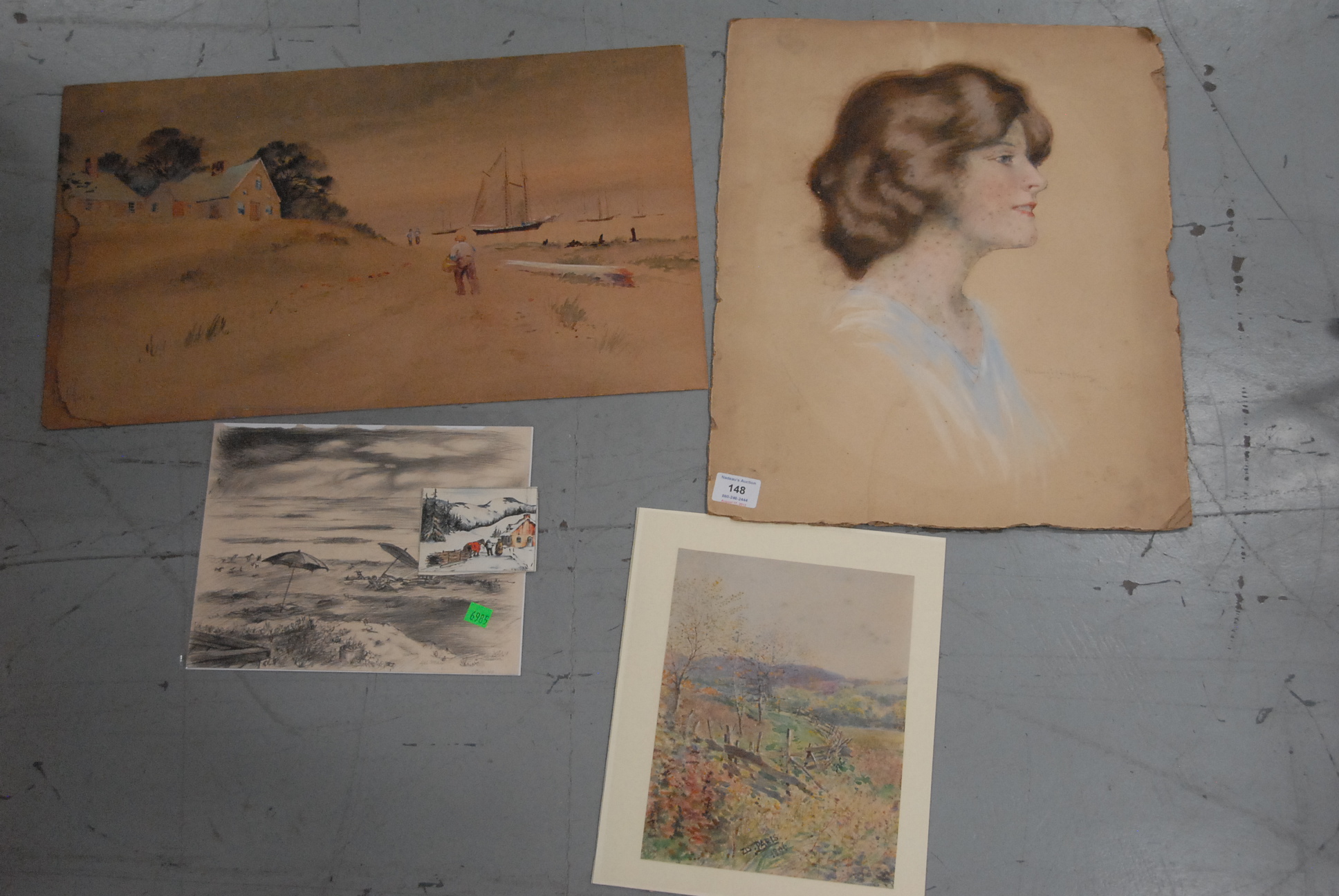 Two paintings to include Josephine Stever 19th/20th century Romantic Scene signed lower right Josephine Stever 1901 25 x 14 and Renie Evants oil on canvas Man on Pole