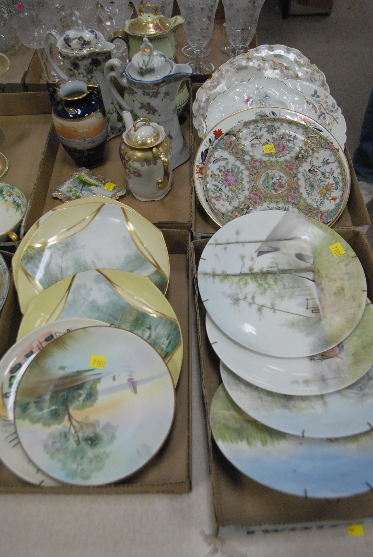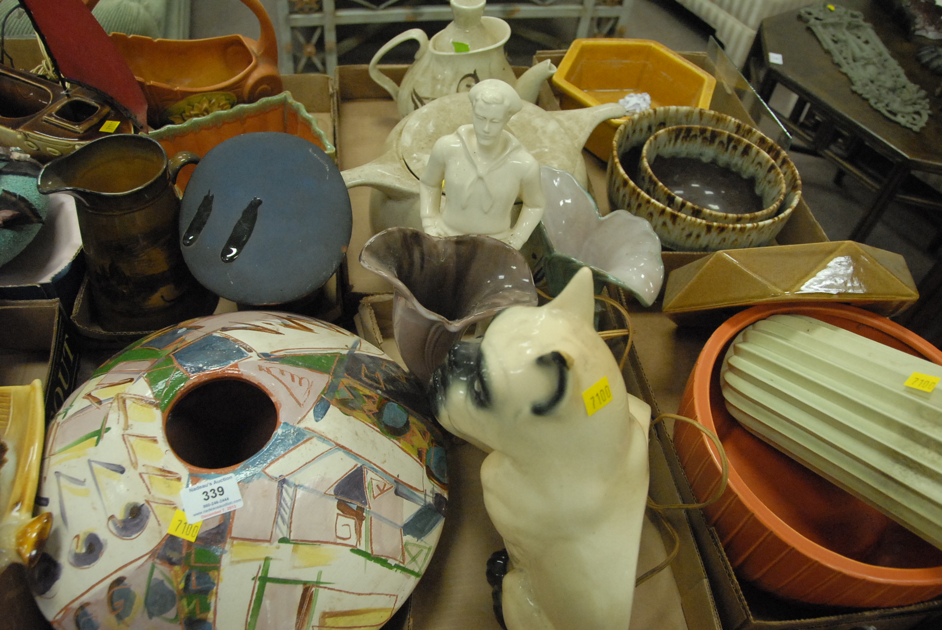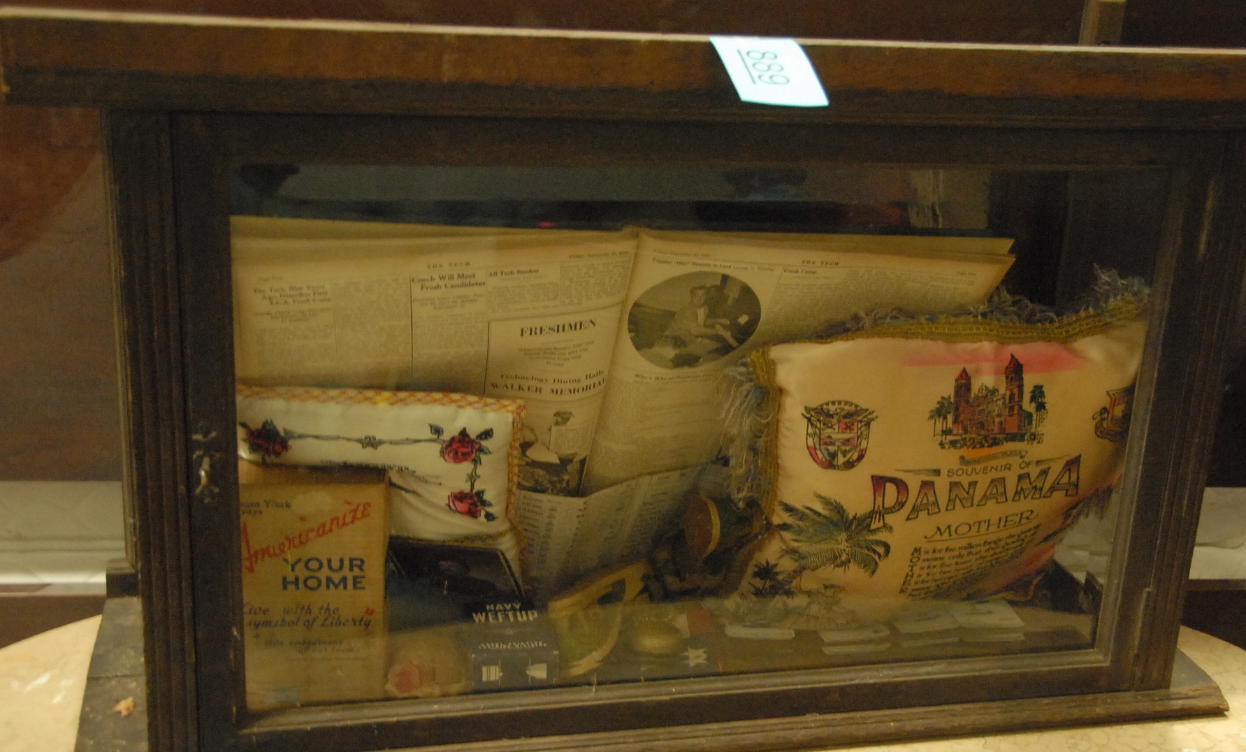 Group of five boxes to include group of approximately 25 small Swarovski crystals, stems, seven paperweights, Royal Doulton figure, Foreign money, etc.