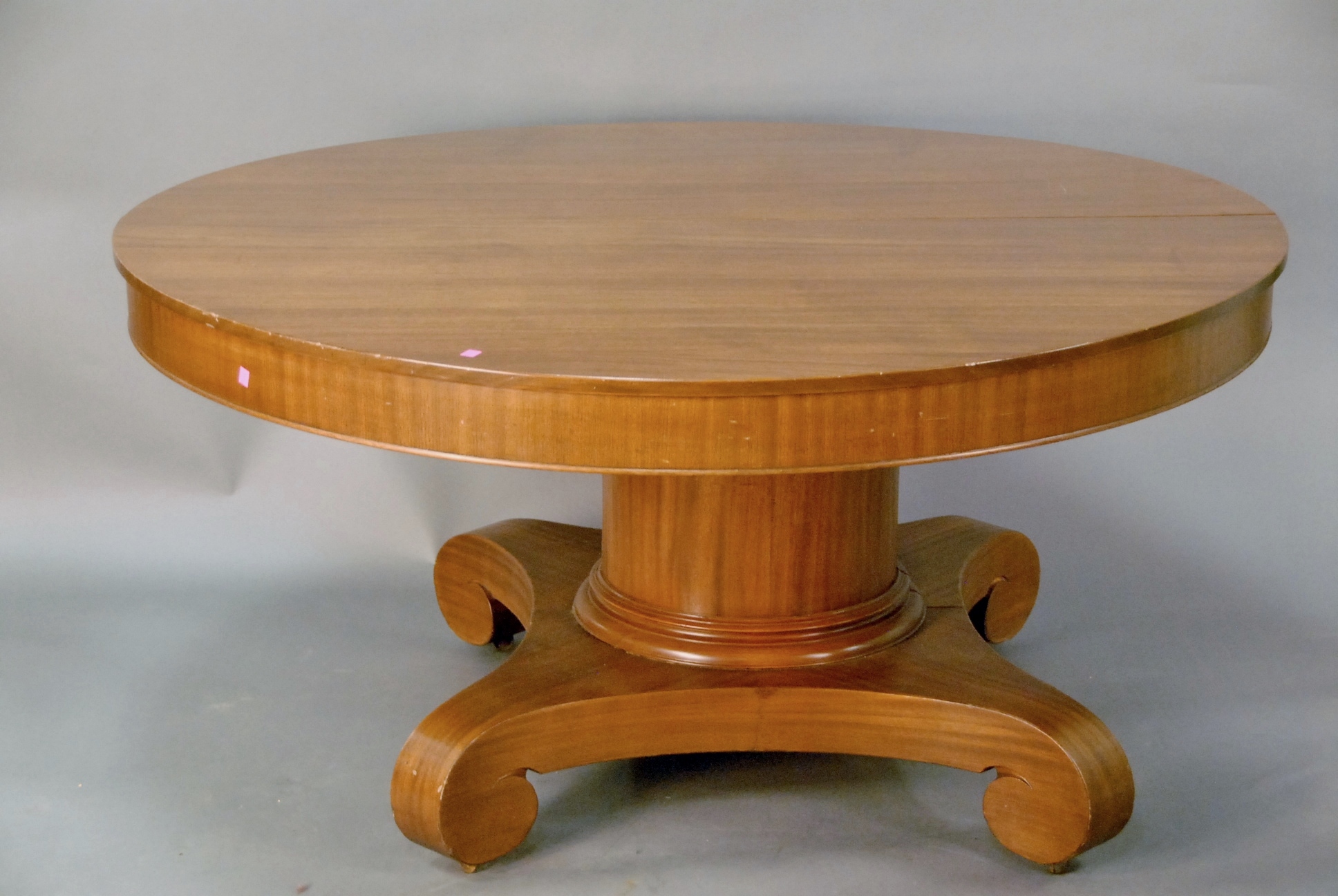 Large round Victorian dining table with three leaves, dia. 60in.