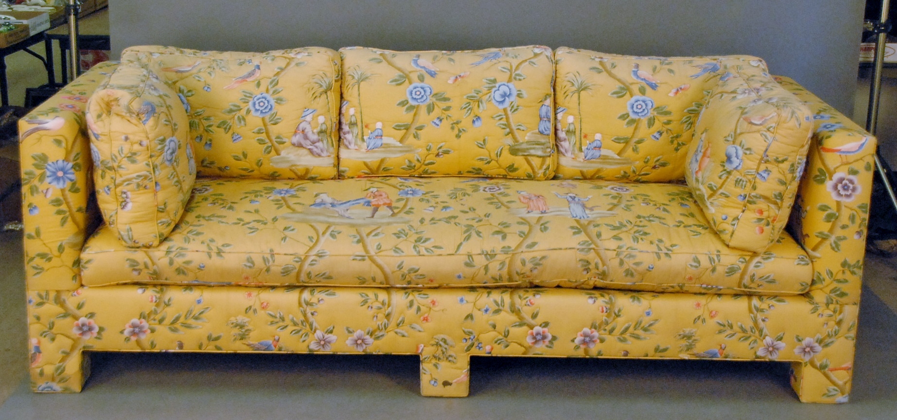Oriental floral upholstered sofa.