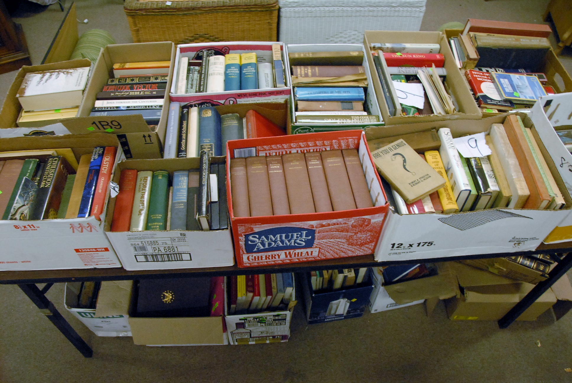 On top and below table to include twenty-three boxes of books.