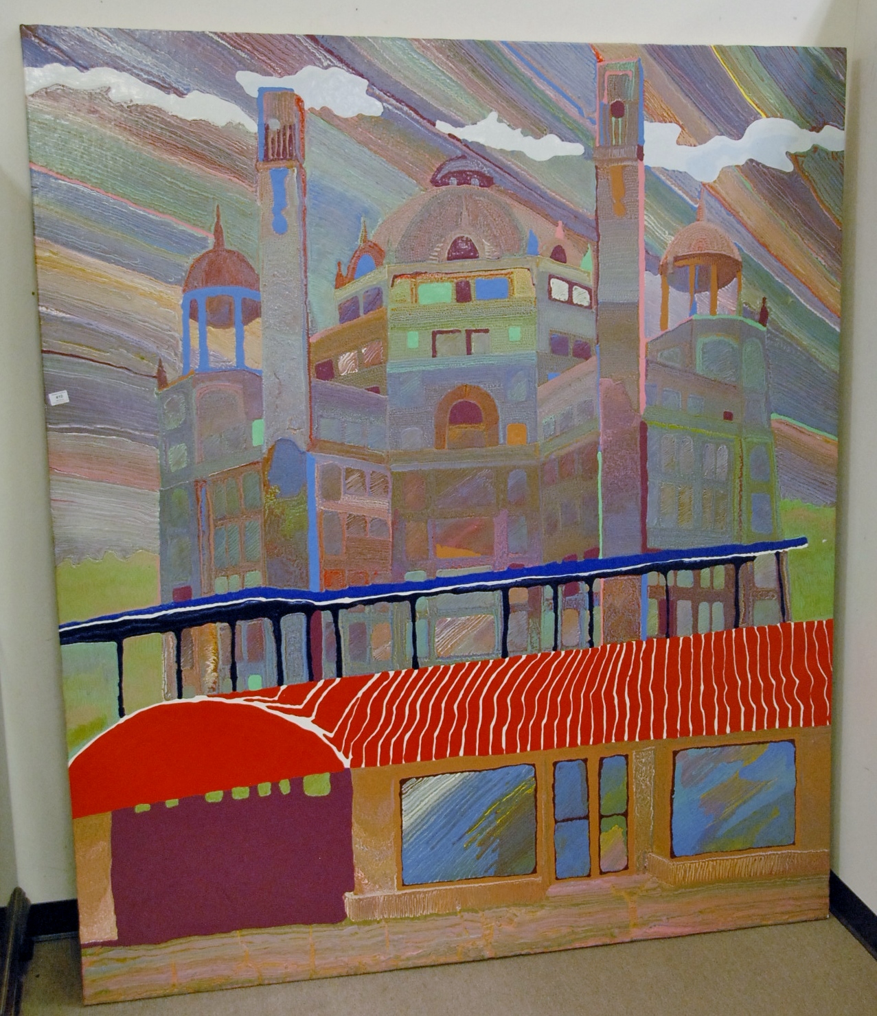 Cham Hendon 1936, oil on canvas of Russian Building, signed on back Cham Hendon, 7’2 x 6’2.