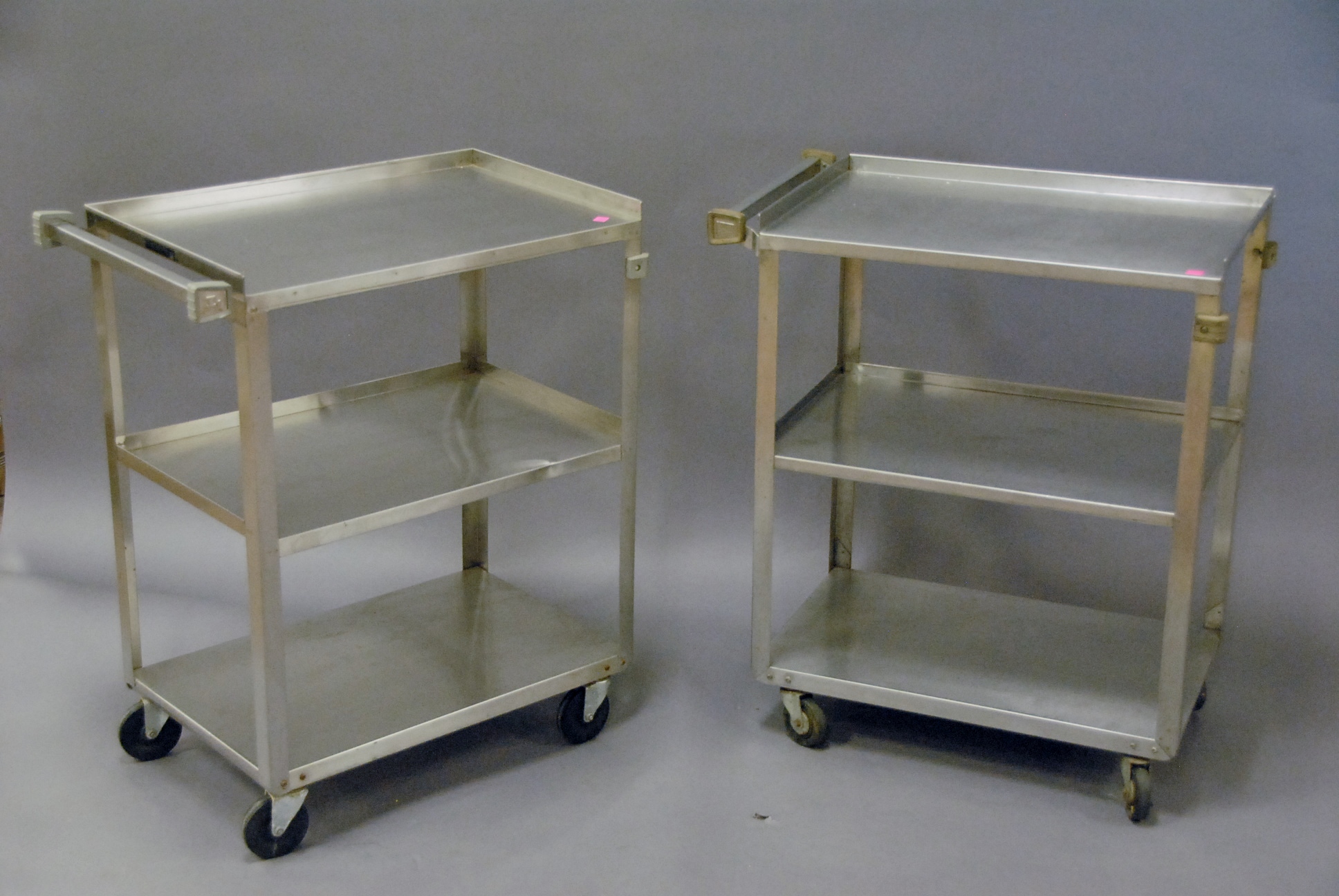 Two stainless steel carts. wd. 27in. dp. 16in. ht. 31in.