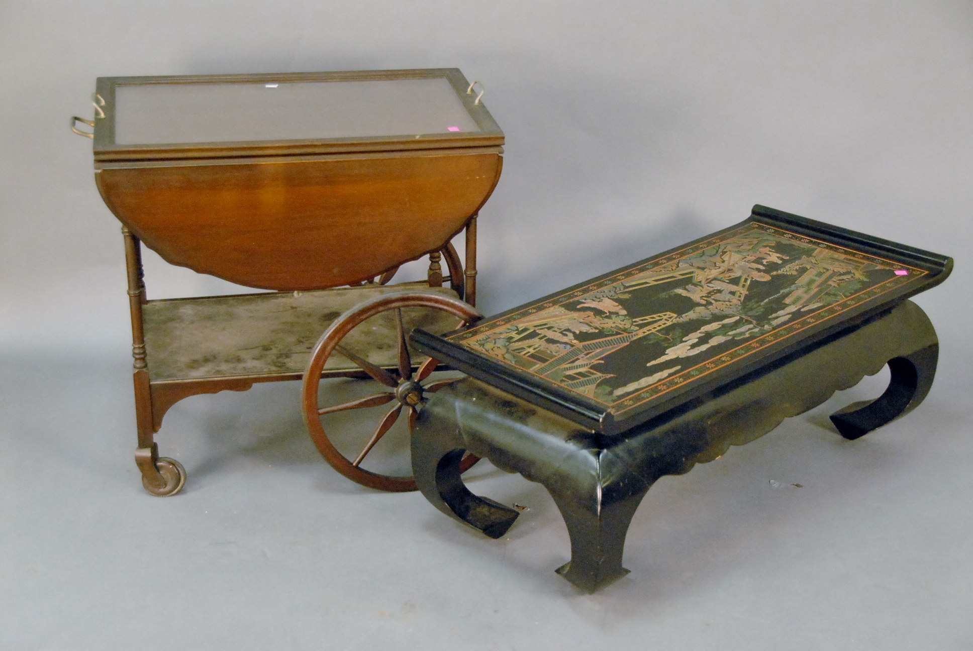 Mahogany tea cart along with Oriental style coffee table.
