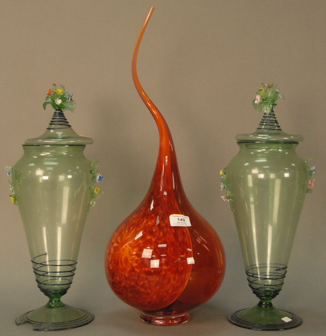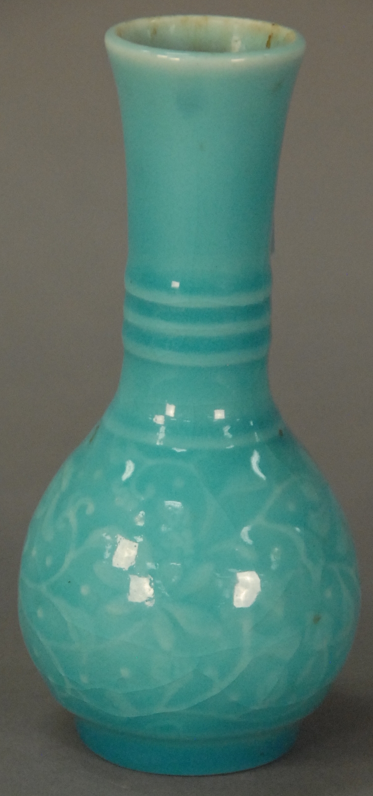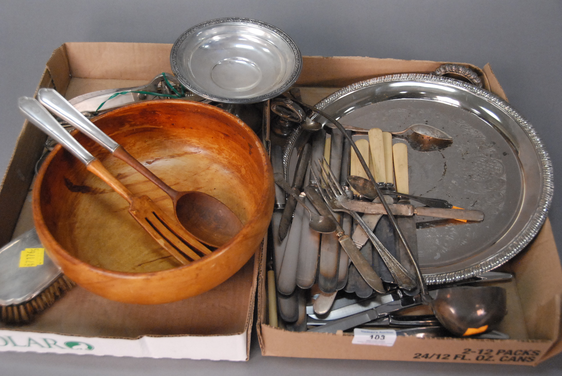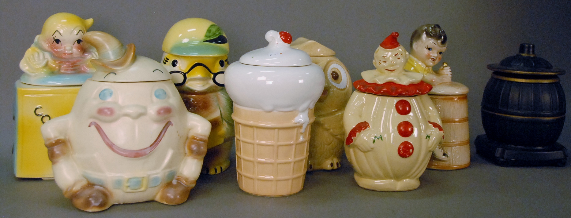 Five box lots to include Stangl, Mrazek, bronze plate, enameled dish, vase marked R. G. Traill, pottery covered jar, Vallauris vase, Westinghouse Hall China, red vase, and two bowls.