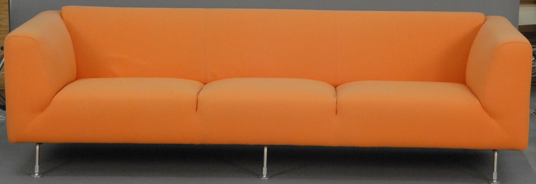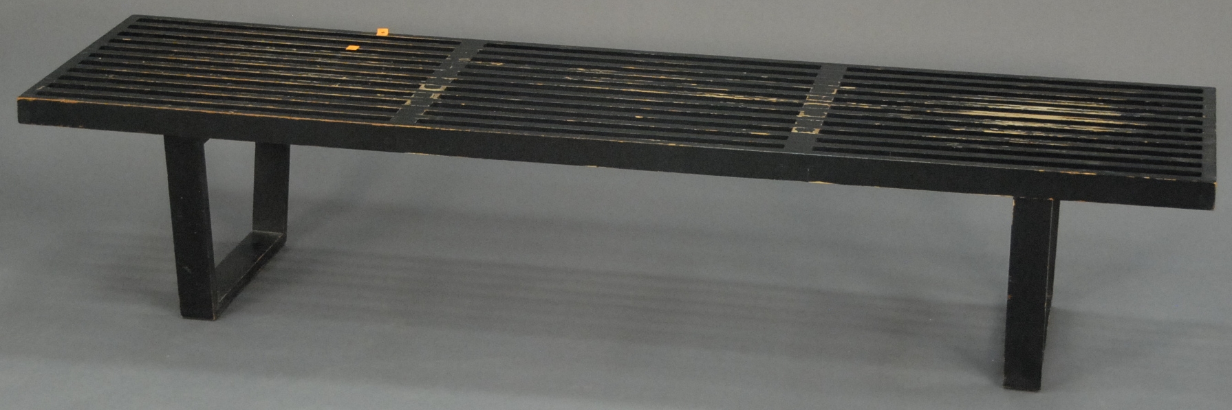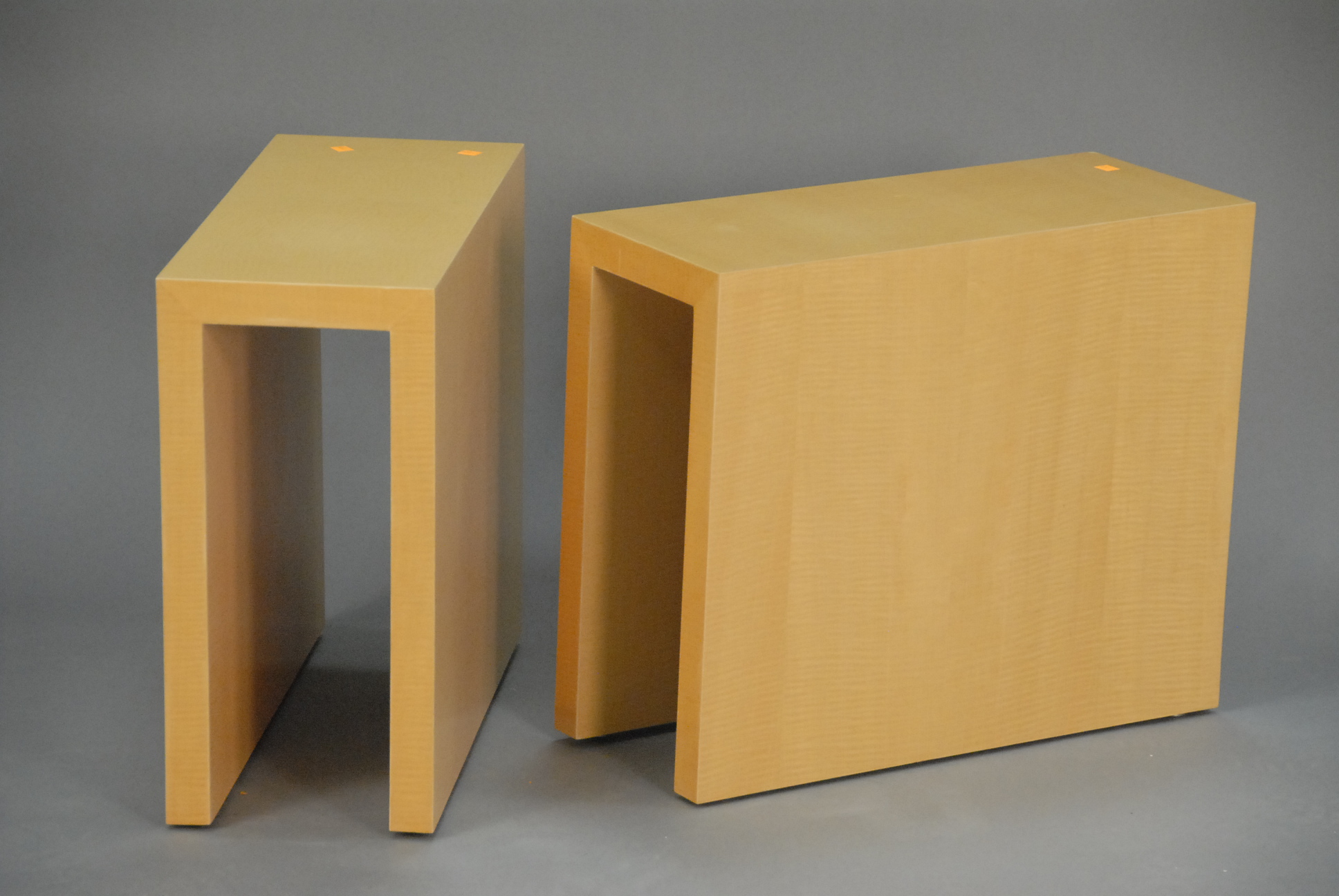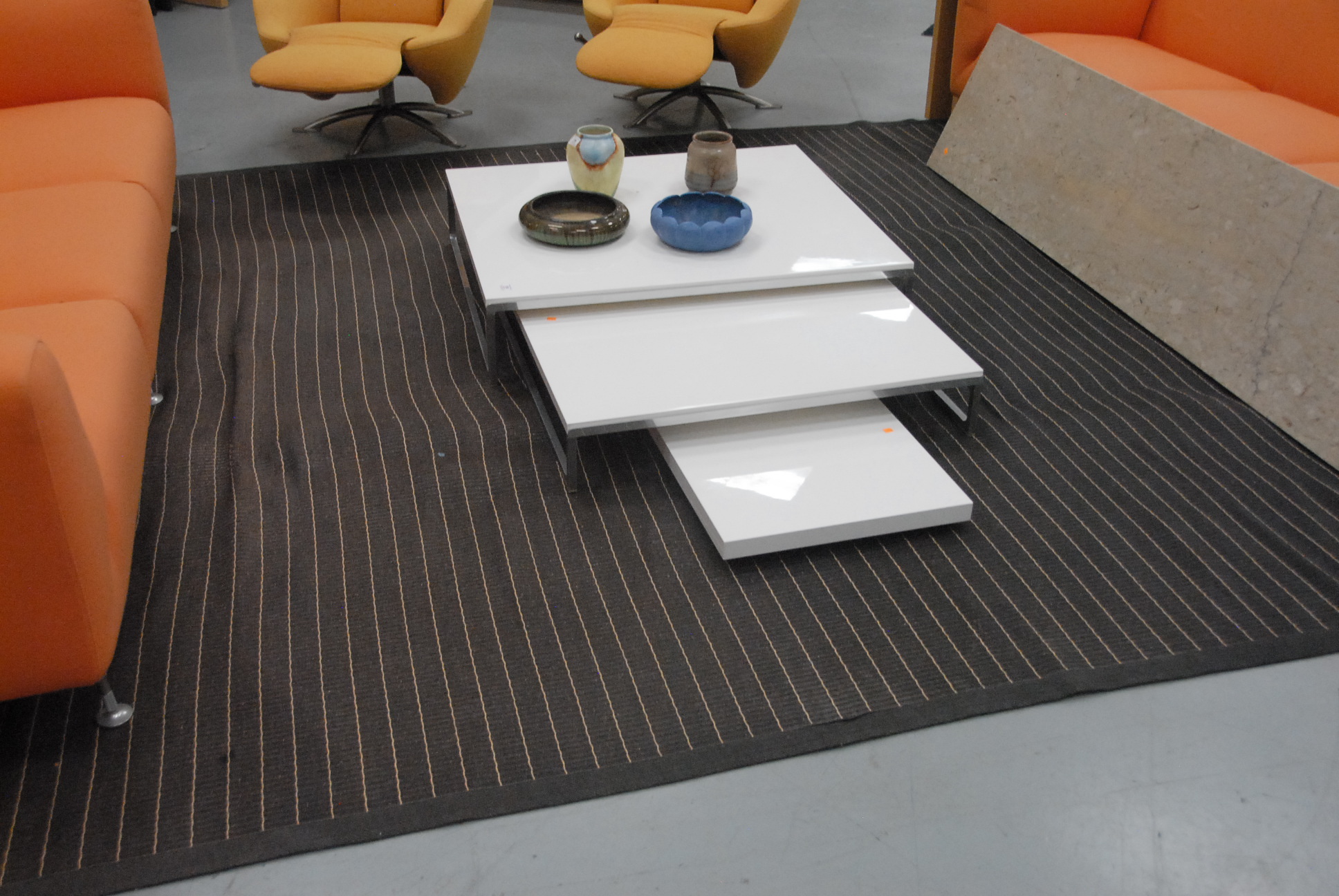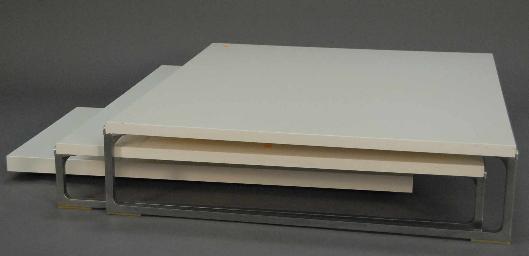 Frighetto nest of three tables Stefano Gallizioli design with lacquer finish and steel base, in very good condition. largest table: ht. 8 1/2in. top: 39 x 35.