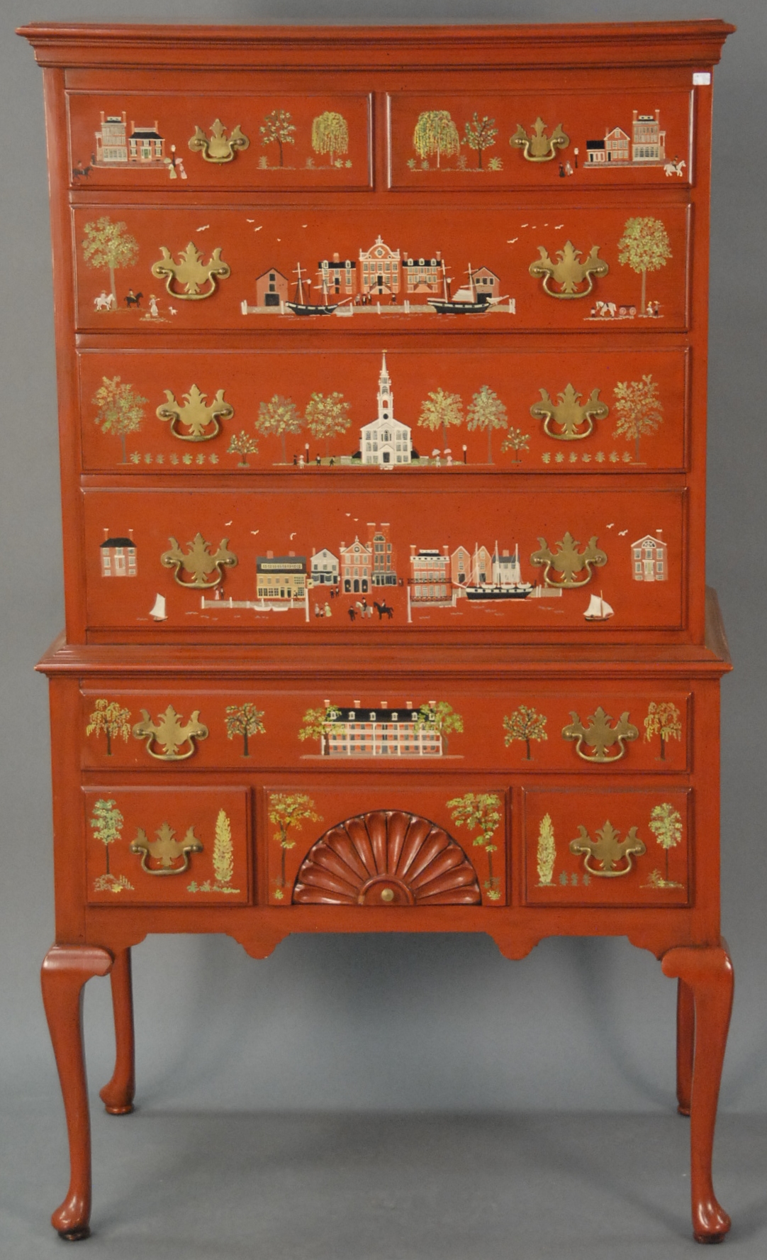 Maxwell Mays painted highboy, painted with Providence scenes. ht. 59in. wd. 33in.