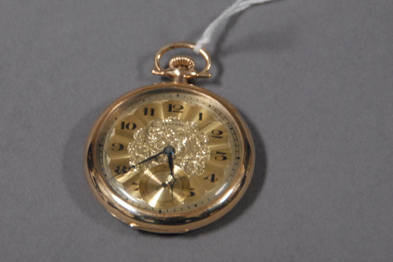 14K gold open face pocket watch Vauchay, 51 grams total weight.