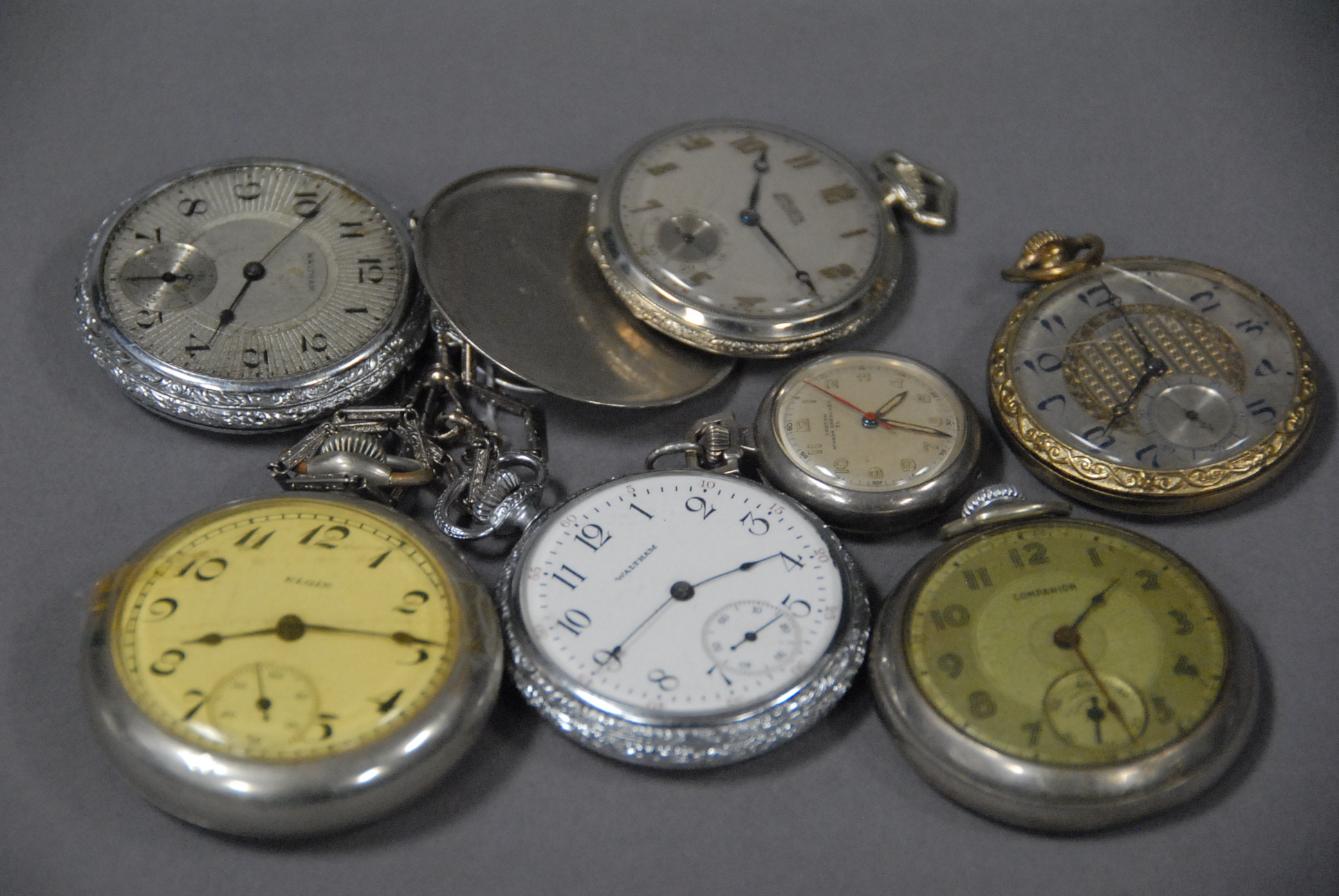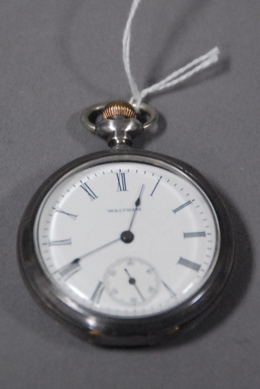 Silver Waltham open face pocket watch works marked Benedict NY.
