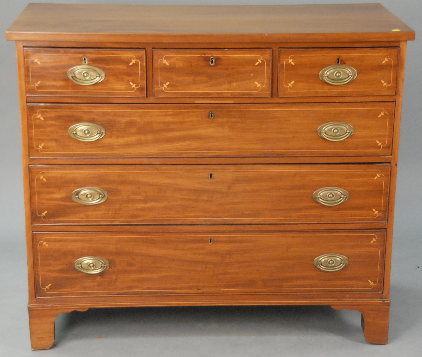 Federal style mahogany three over three drawer chest with line inlay, ht. 40in. wd. 46in.
