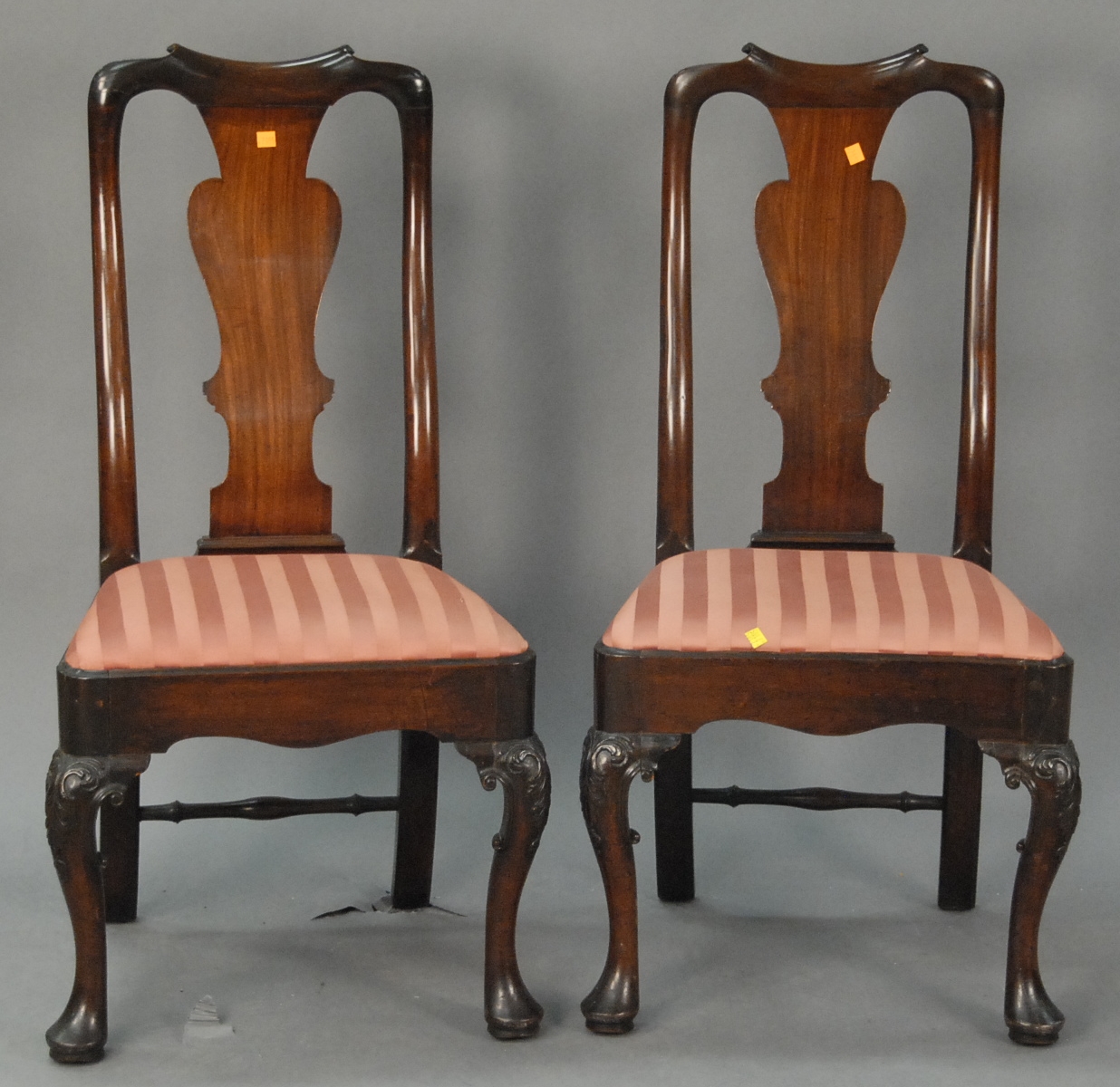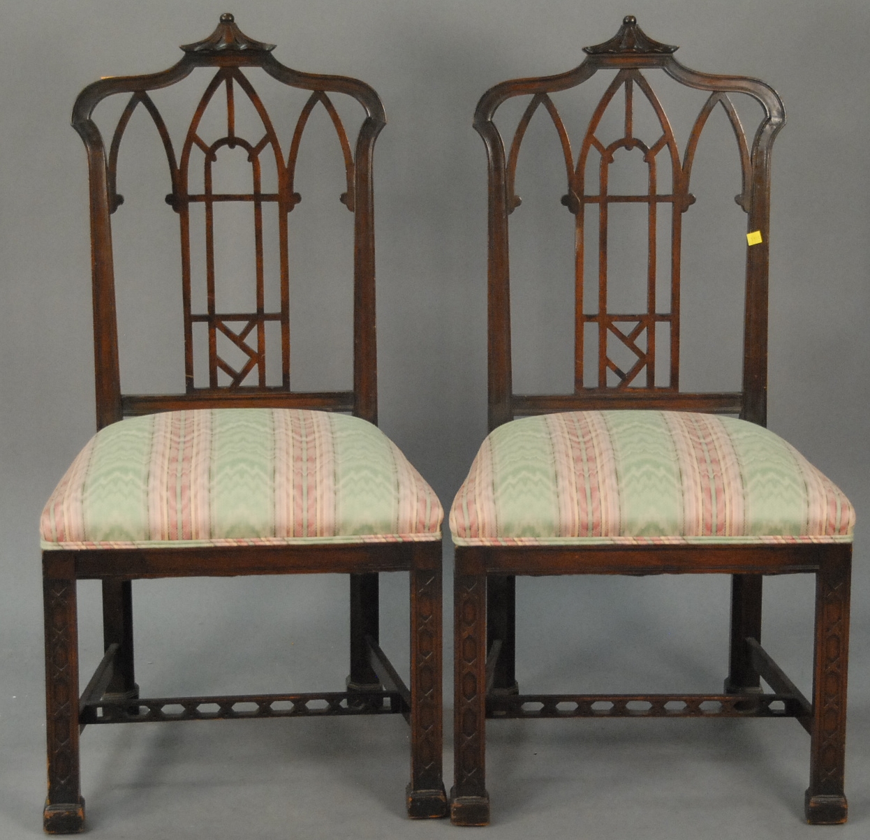 Pair of custom mahogany Chinese Chippendale style side chairs.