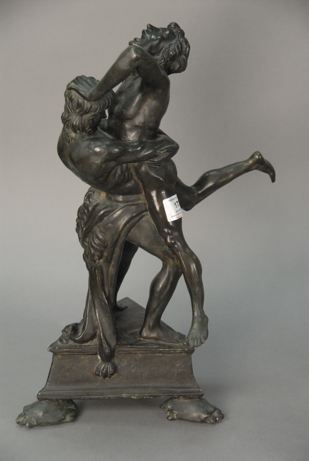 NeoClassical style bronze of Hercules and Antaeus on triangular base, ht. 18in.