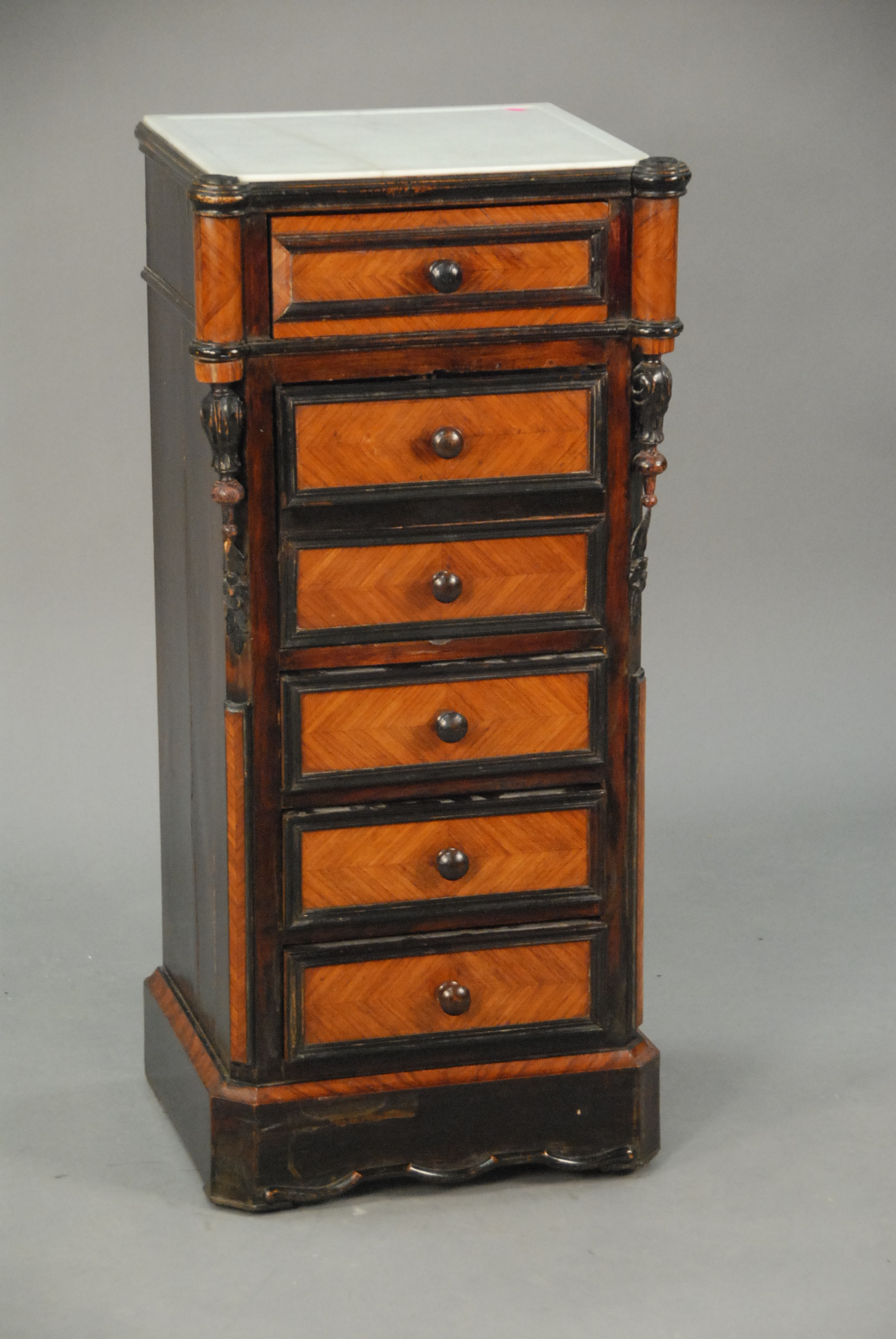 Victorian marble top side cabinet with six drawers with inset marble. ht. 38in. wd. 18in.