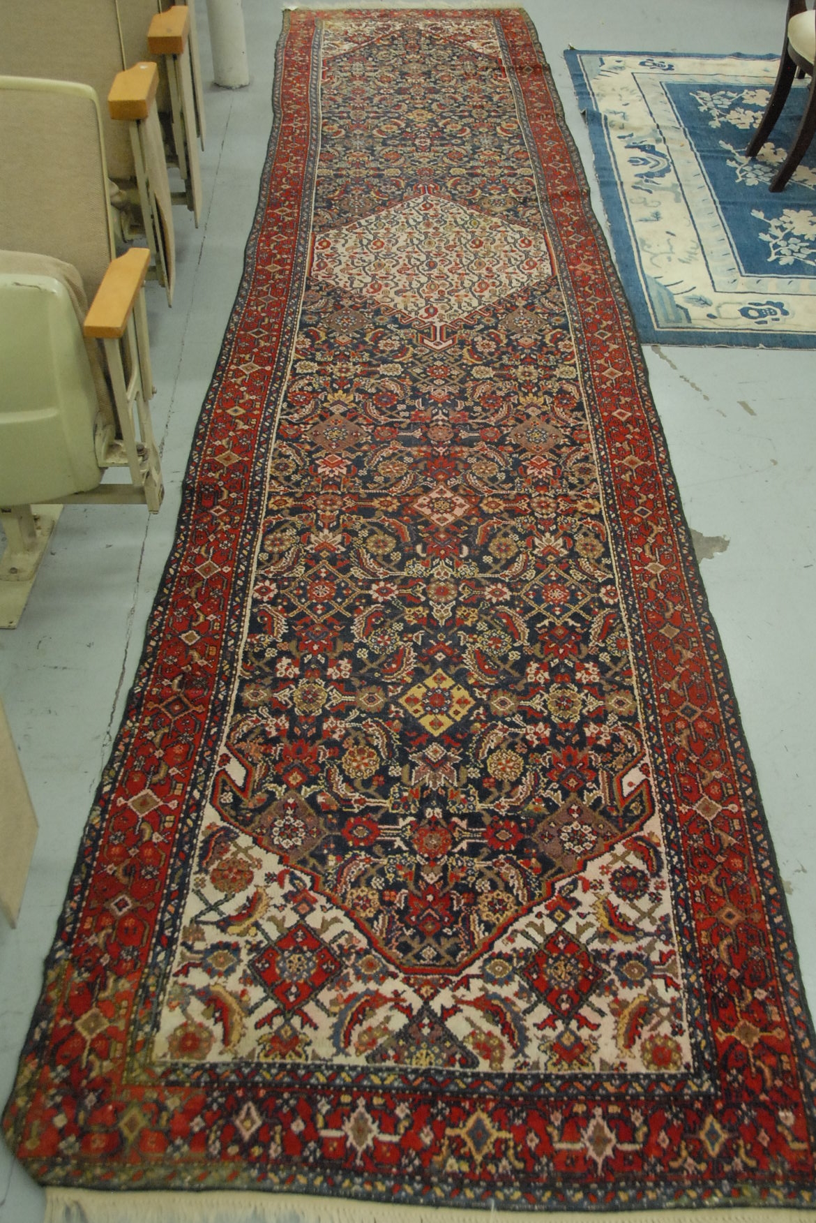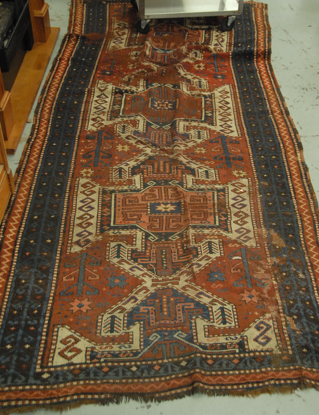 Caucasian Oriental runner, worn, 4’1 x 9’6.