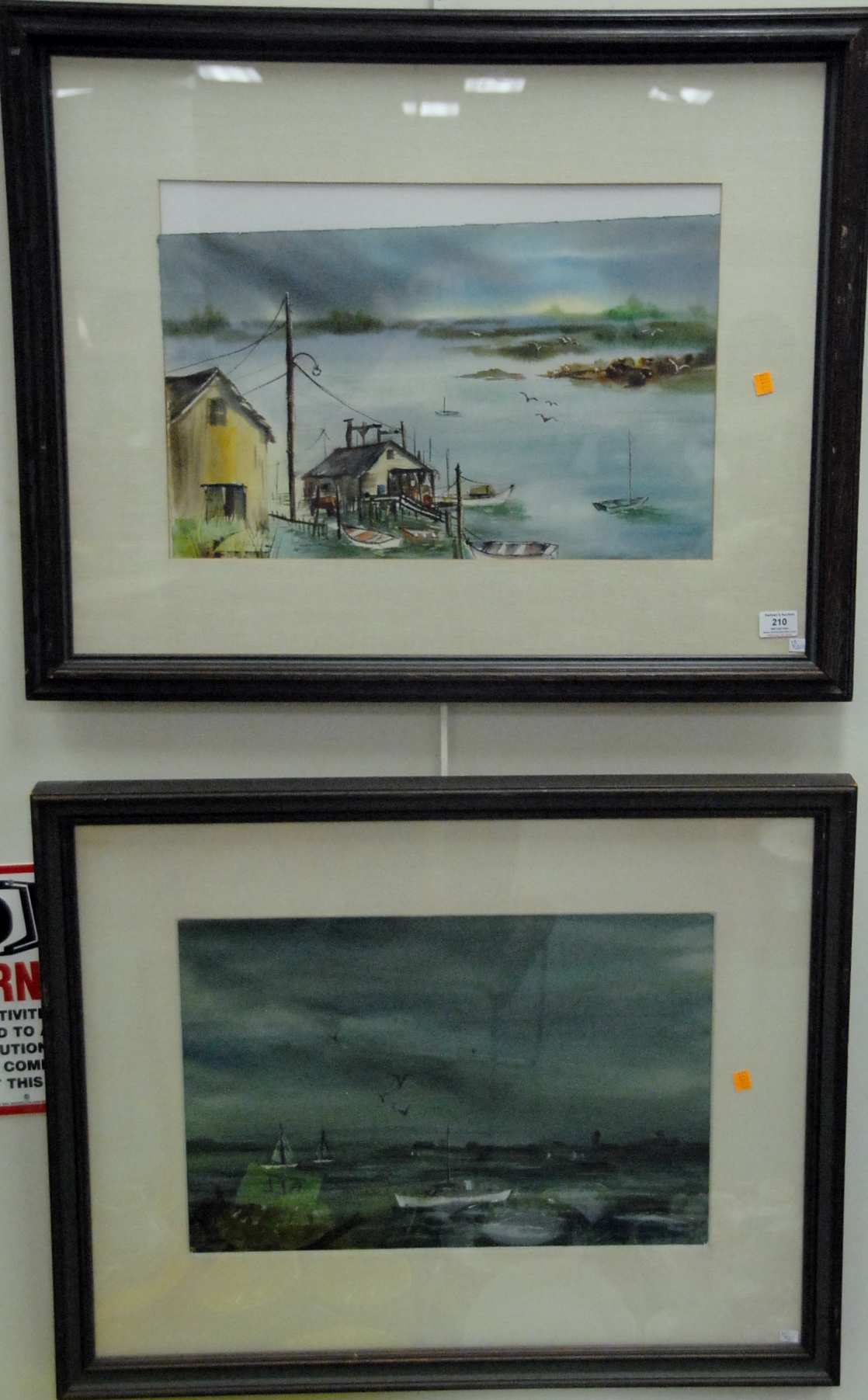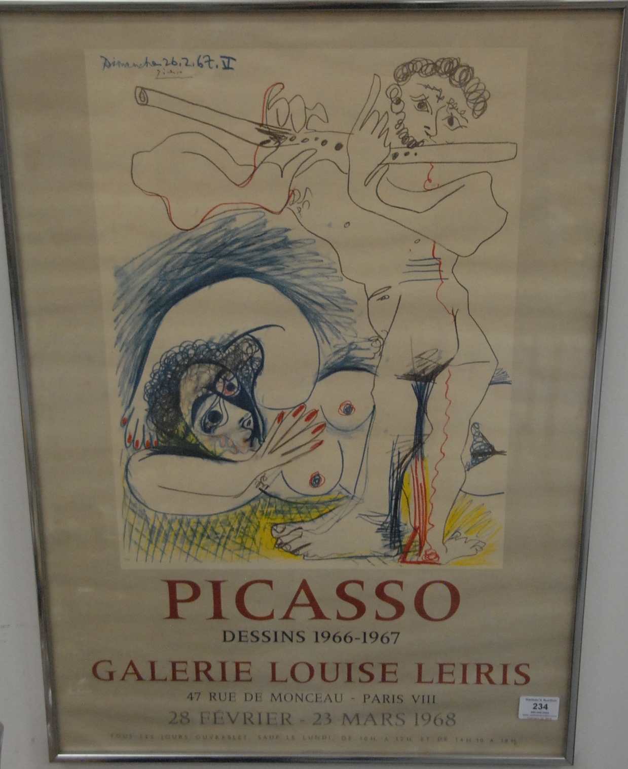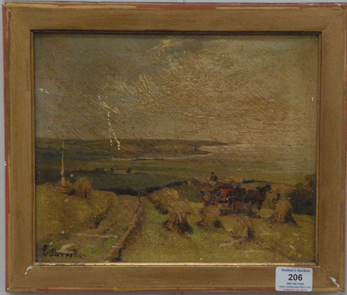 Five framed pieces to include Edward Joscelyn Brandford 1905 pencil signed drawing, African pencil signed print, Marjorie Knochenhauer 51′ print, wood block of horses signed indistinctly, and framed collage Mayan by Barry Cohen.