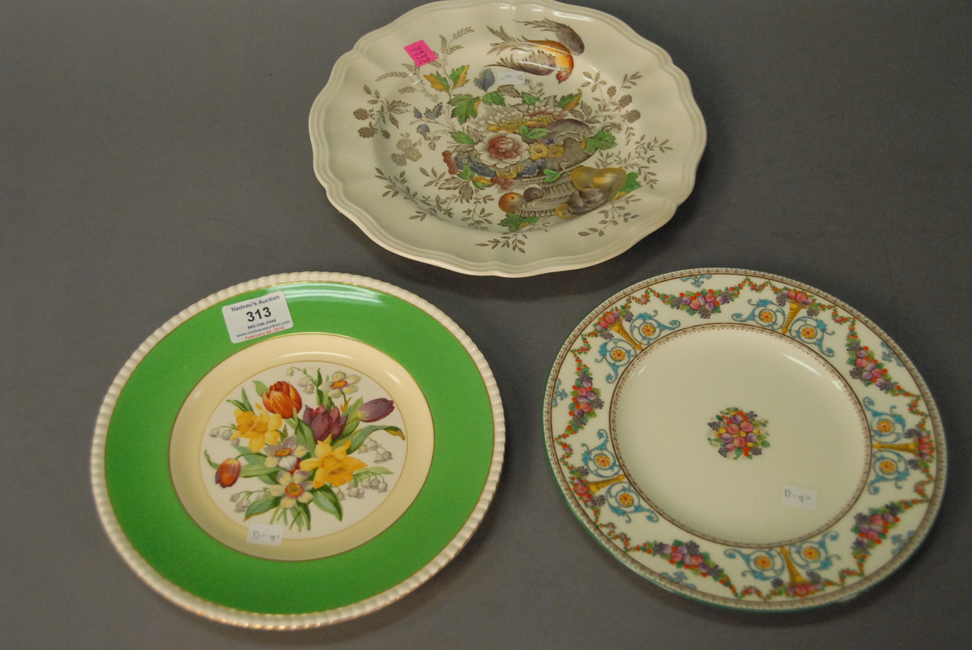 Three sets of plates including eight Royal Doulton Hampshire, twelve Wedgwood Venton, and twelve Fondeville Ambassador plates. dia. 9in., 9in., & 10 1/2in.