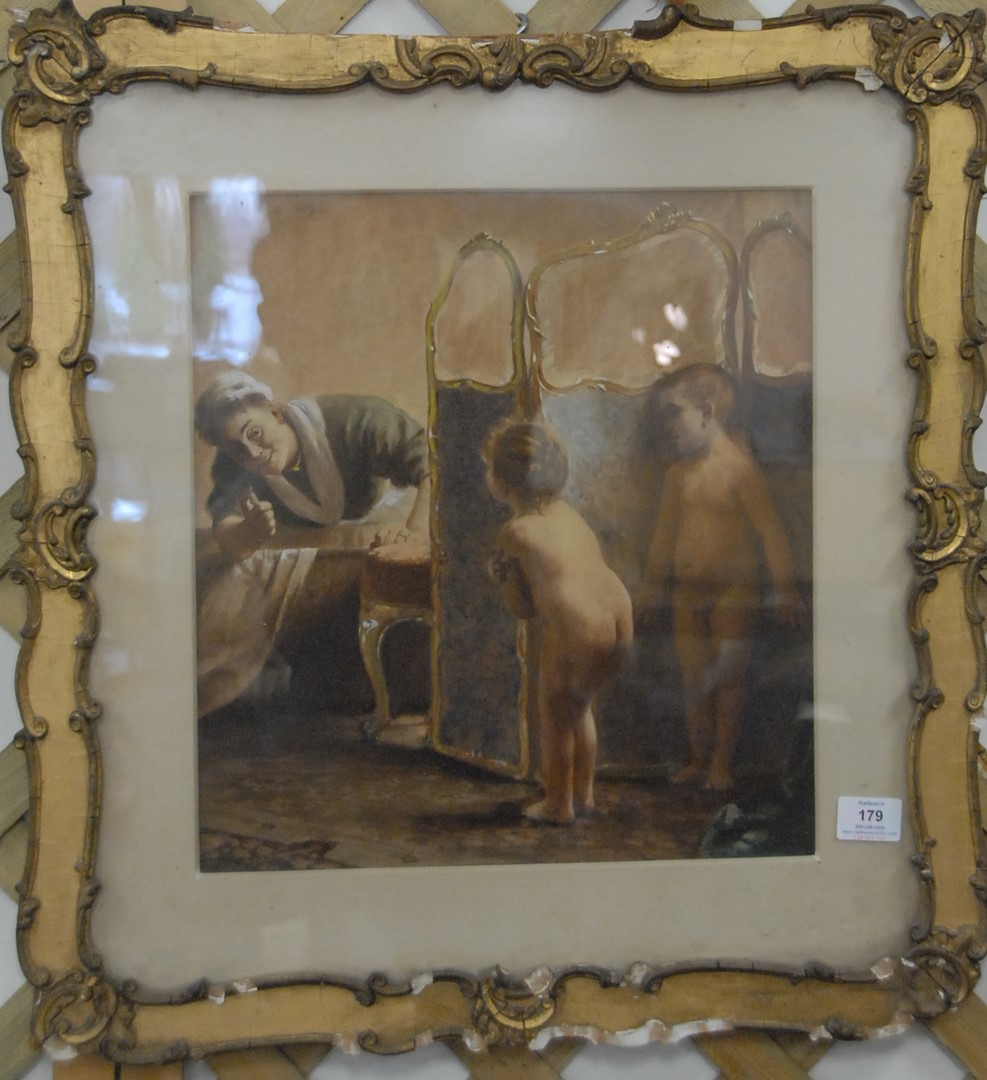 Circle of Paul Peel 1861-1892 engraving with highlights of mother with children signed top left Paul Peel 1892. 16 x 14