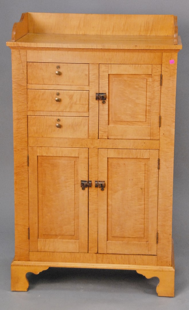 Custom figured maple dental chest/cabinet with eight fitted drawers behind one door. ht. 52 in. wd. 31 1/2 in. dp. 16 1/2 in.