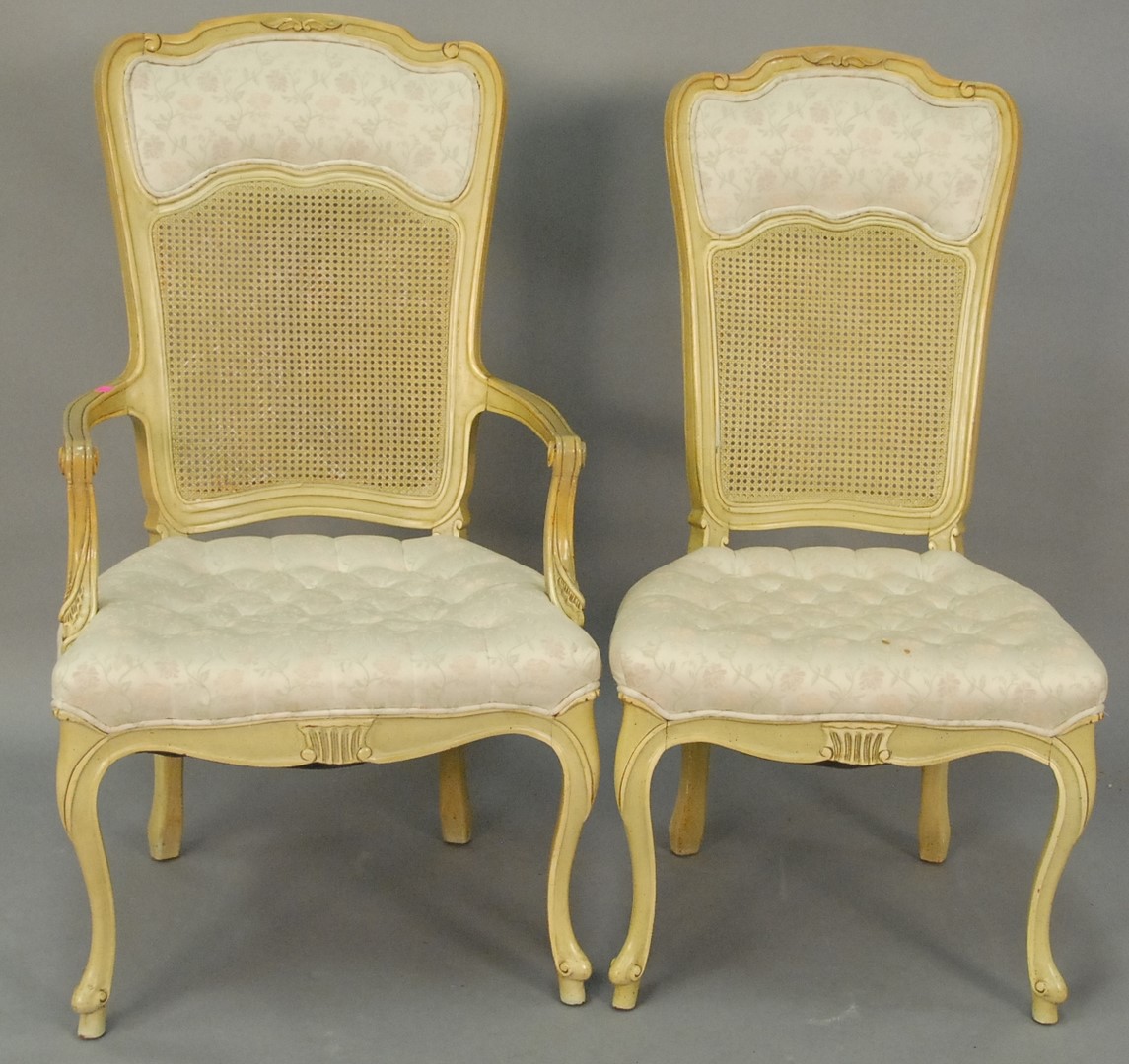 Set of twelve Louis XV style dining chairs all cane in excellent condition. chair seat height 17 1/2 in. and total chair height 43 in.