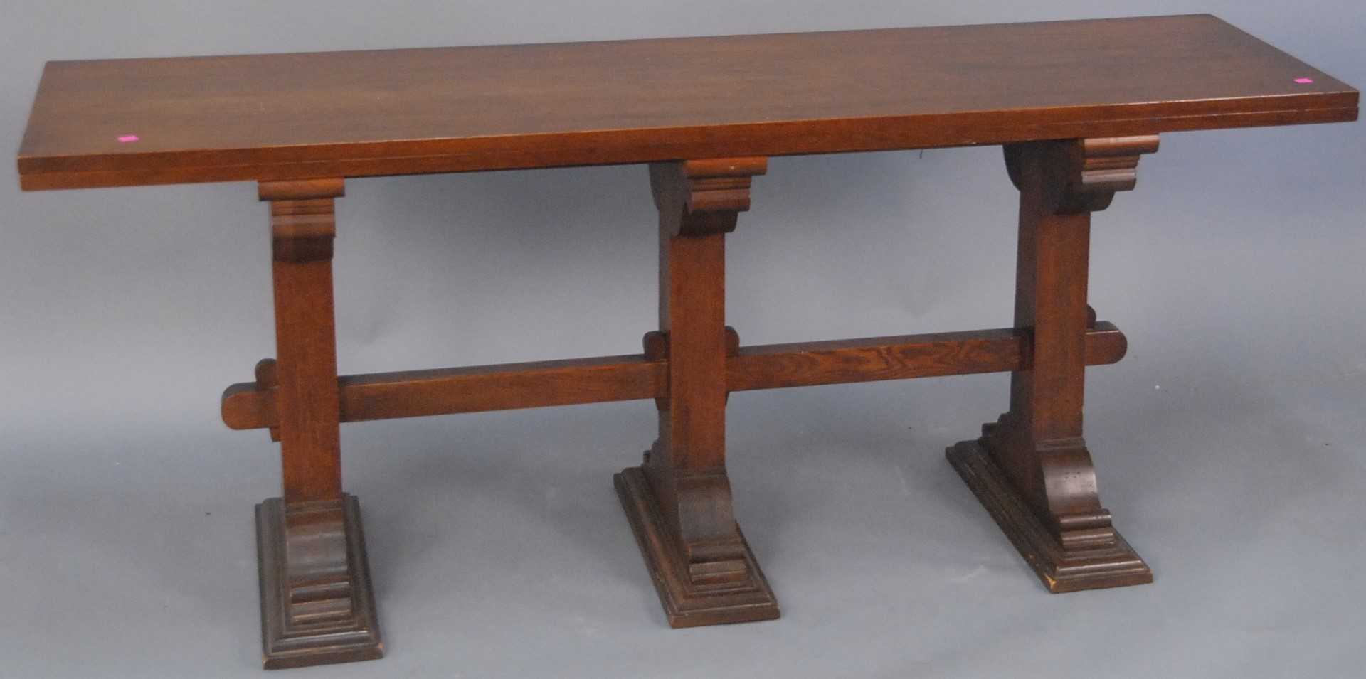 Drexel walnut extension table on tressel base. ht. 29 in. open: 40 x 70 closed: 20 x 70