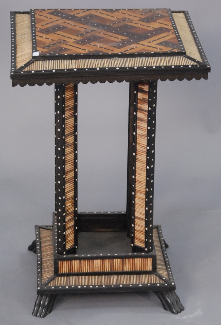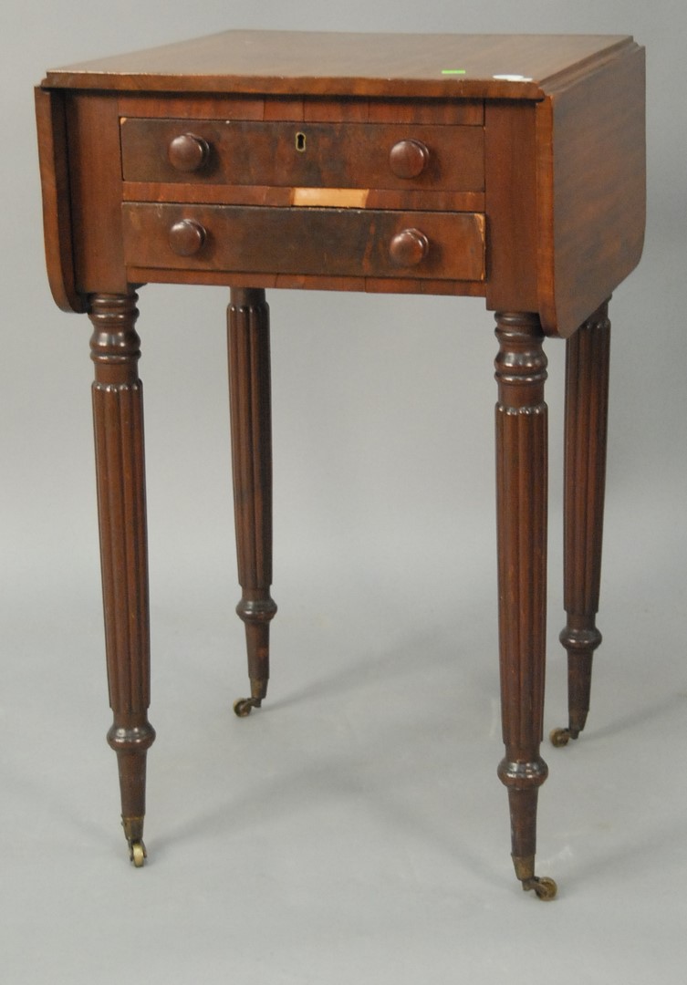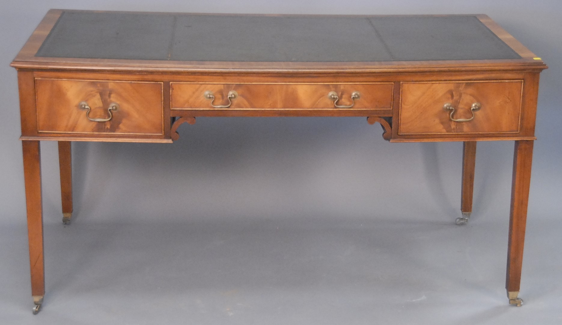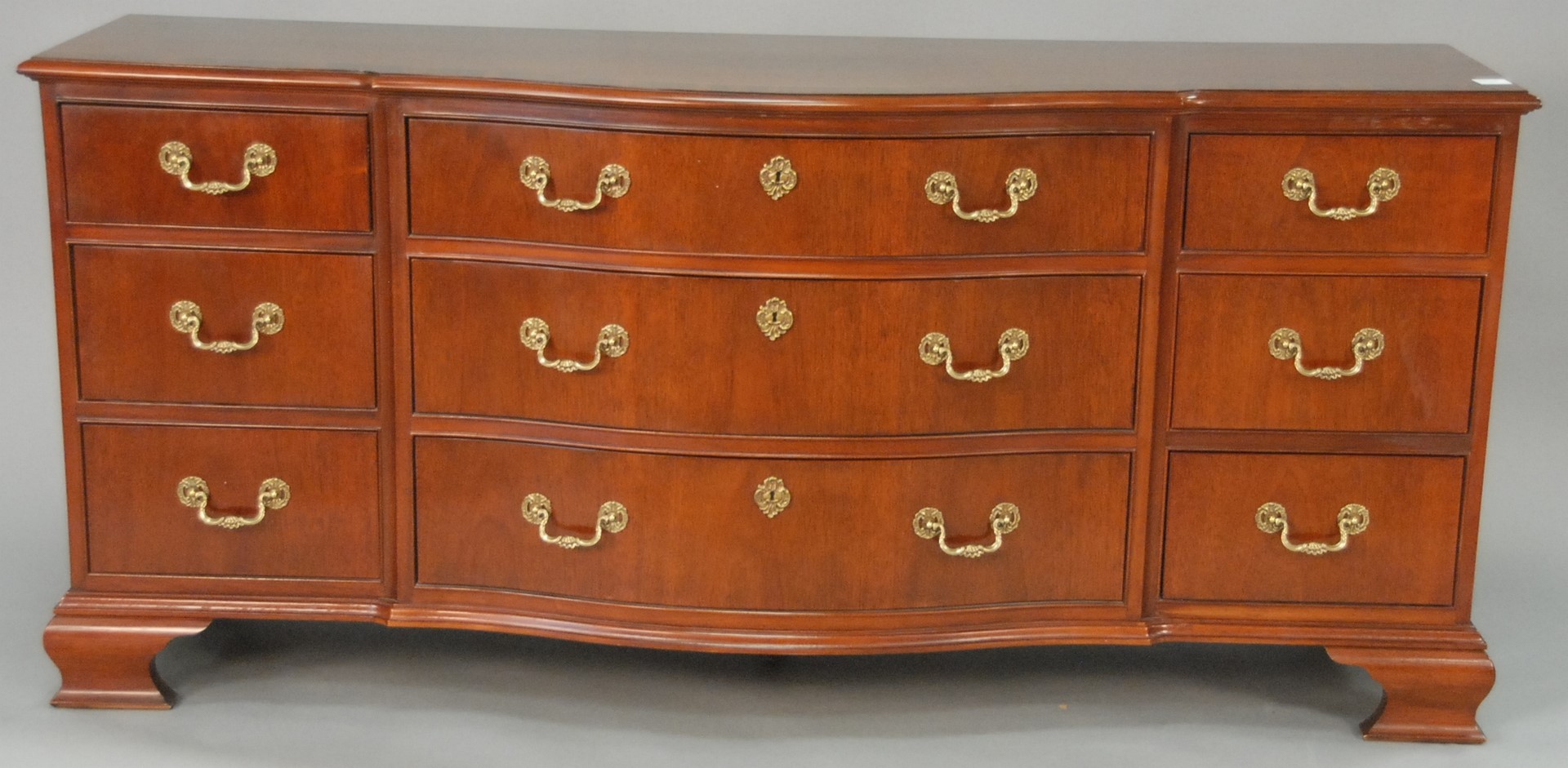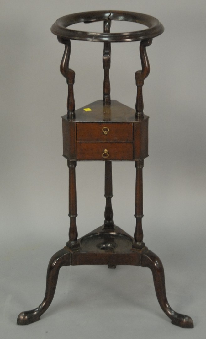 Queen Anne burlwood kneehole desk having slant lid, interior with well, double bank of drawers, and center door all on ball feet, early 18th century. ht. 32 1/2 dia. 35 1/2