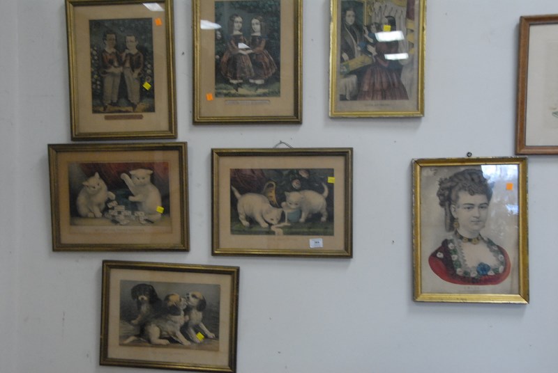 Seven prints to include three Currier and Ives My Little White Kittens, The Playful Family, and Little White Kitties and a group of four prints Little Brothers, The Little Sisters, Look at Papa, and Julia.