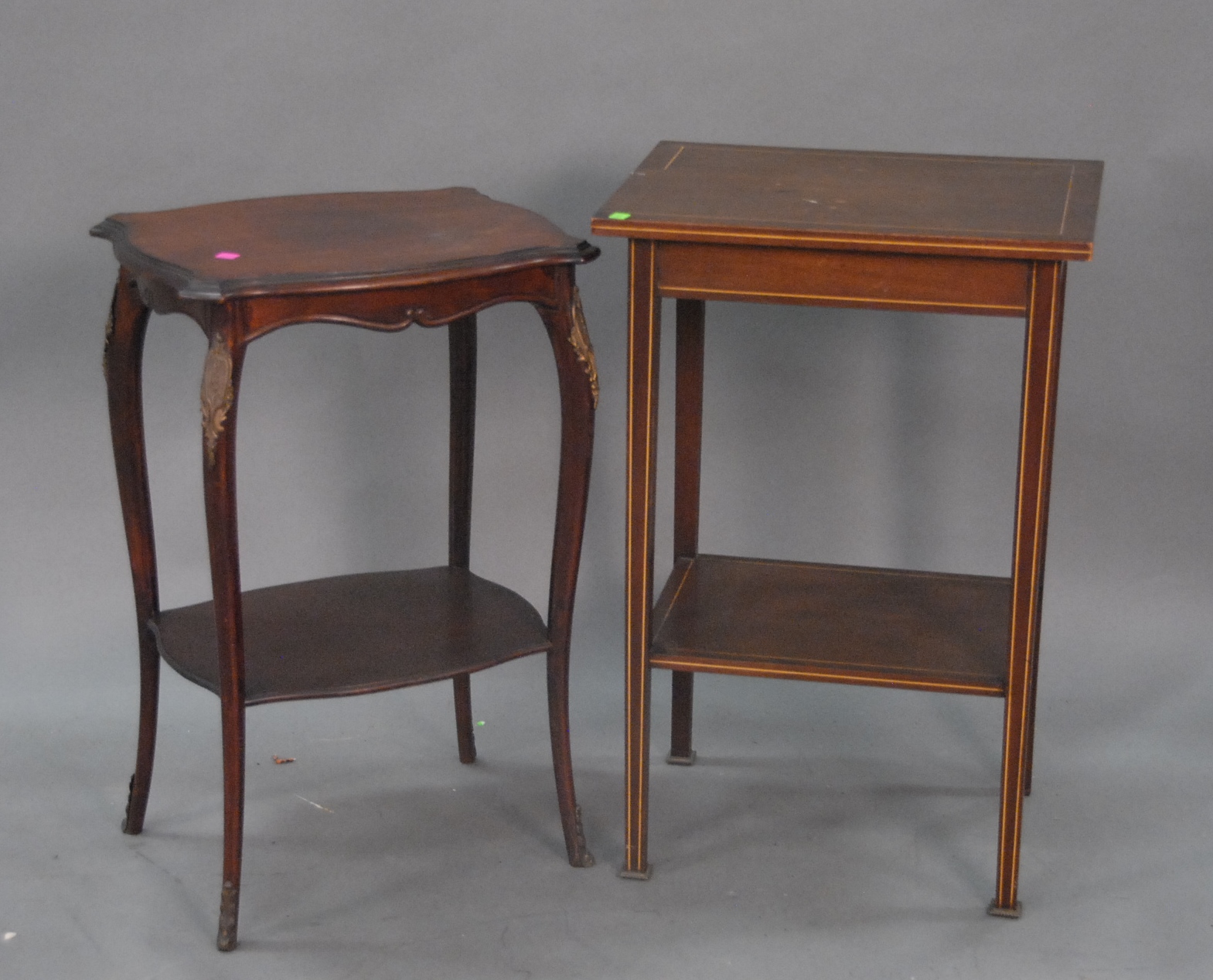 Ten piece lot to include Marquetry inlaid burlwood Victorian corner shelf, nest of three tables, Louis XV style table, inlaid table, A.H. Davenport coffee table, extension table, Queen Anne style loveseat, and walnut coffee table.