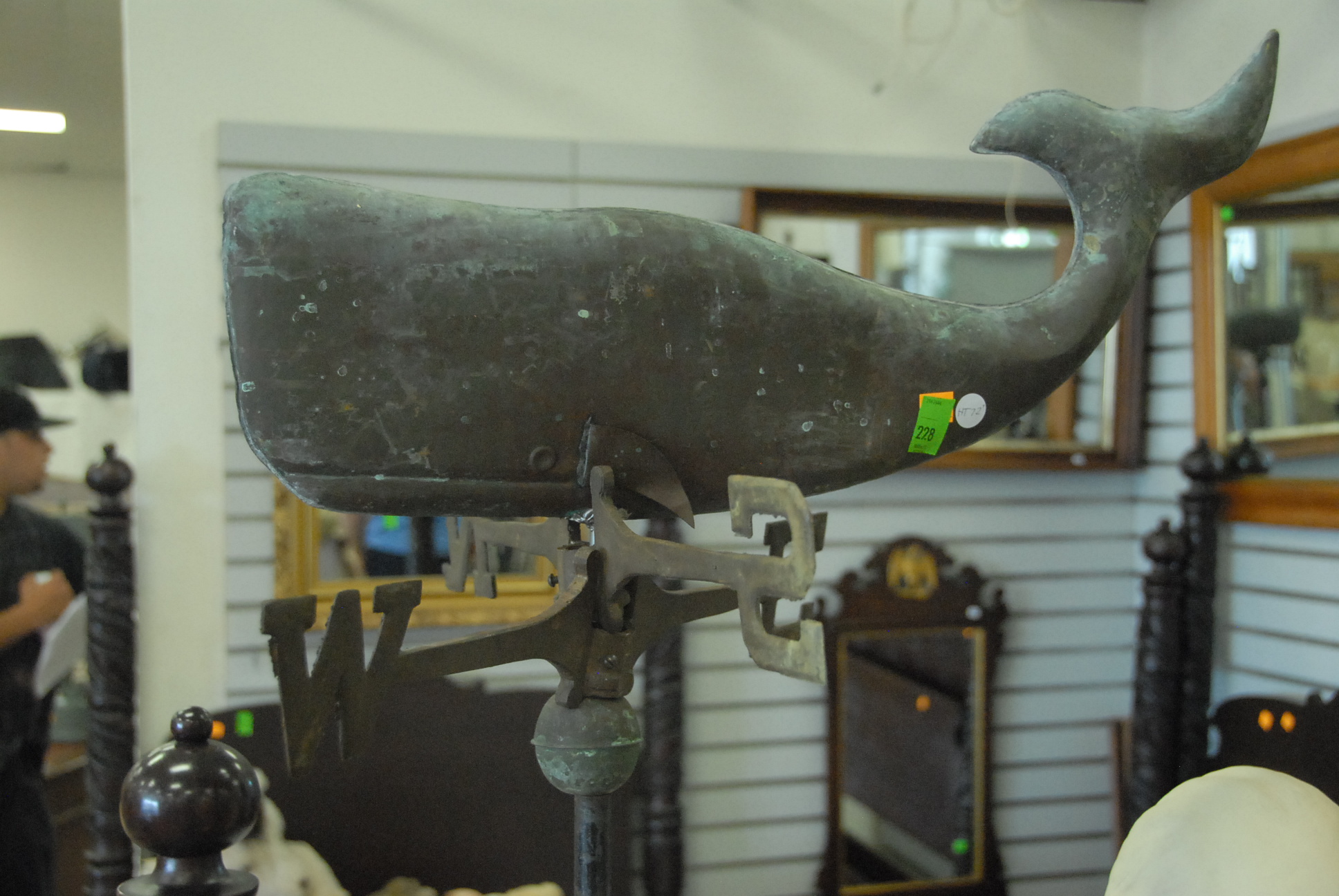 Box of doorstops and bookends, bronze and brass, and pair of opera glasses.