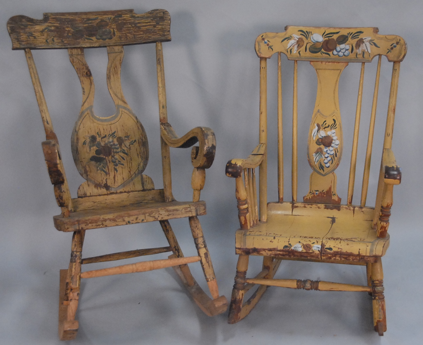 Group of four rocking chairs to include one Hitchcock and three black stenciled.