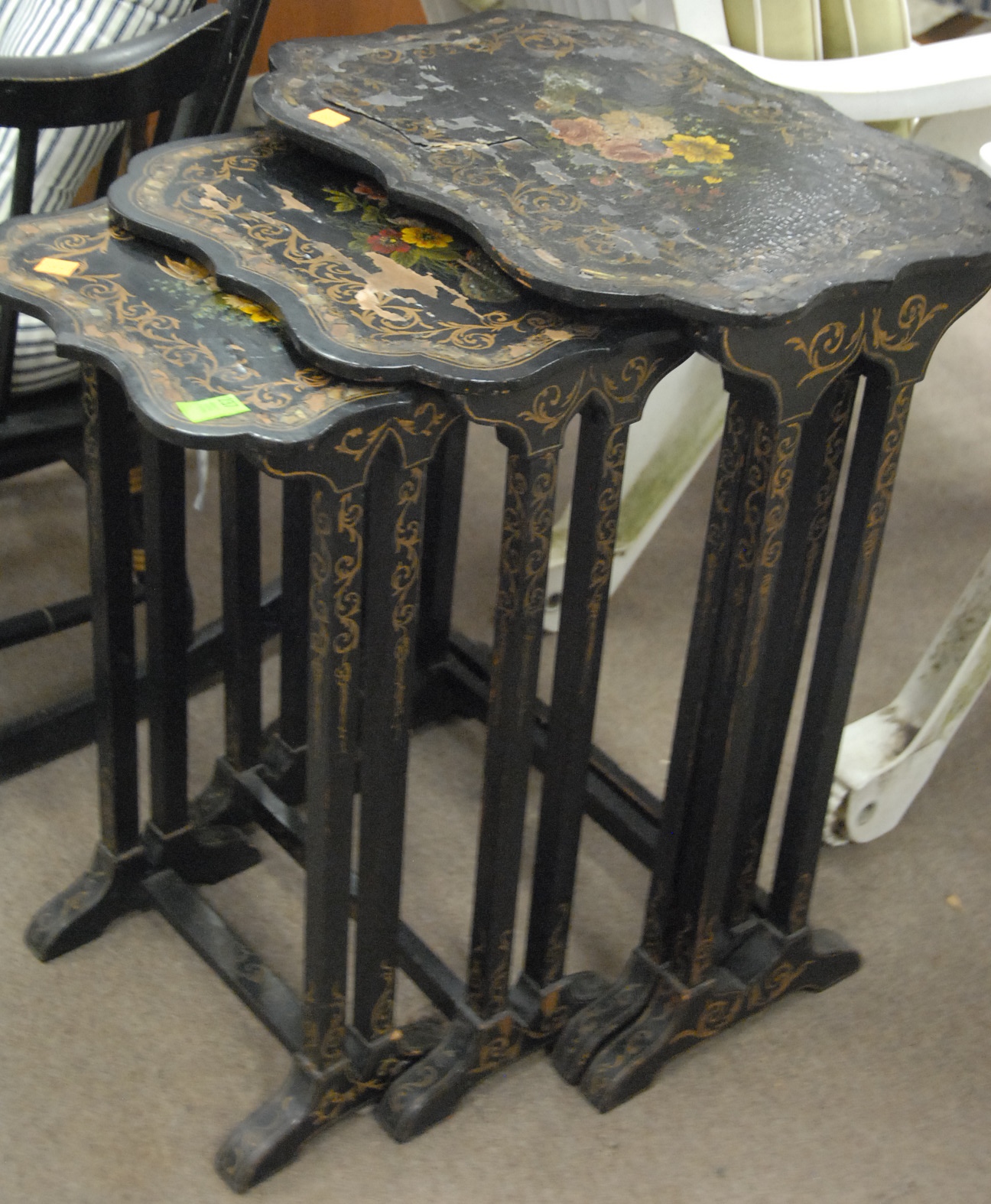 Black lacquered and inlaid Oriental style set of four stacking stands.
